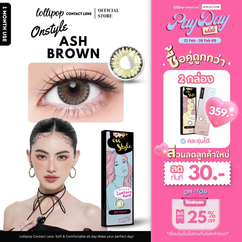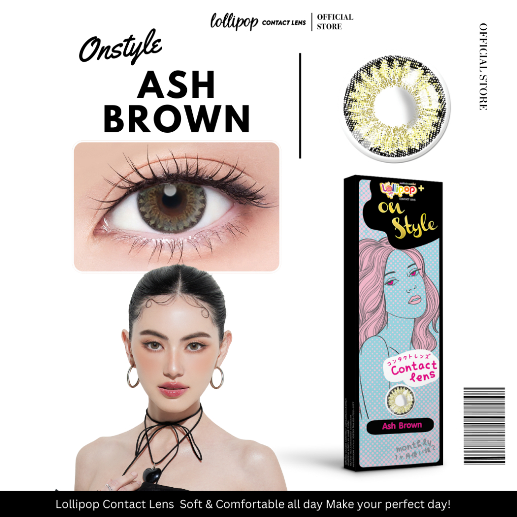 [ซื้อคู่ถูกกว่า] Lollipop OnStyle Contact Lens Ash Brown 0.00ถึง-1000 คอนแทคเลนส์