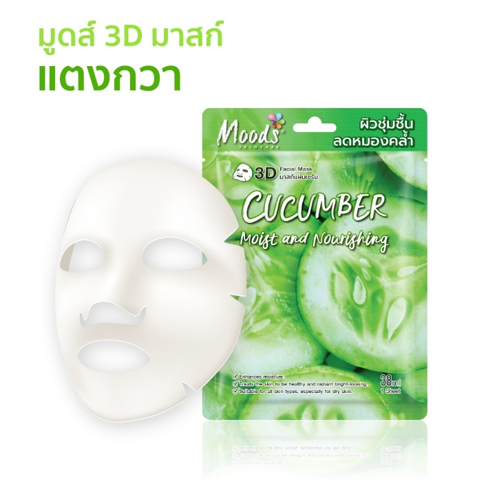 (กล่อง 10 ซอง) Moods 3D Facial Mask สูตรแตงกวา มาสก์แผ่นเซรั่ม (ปริมาณ 38 ml.)