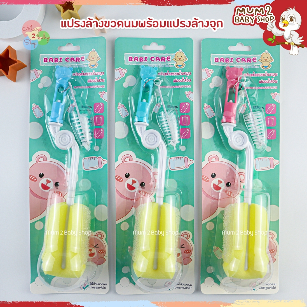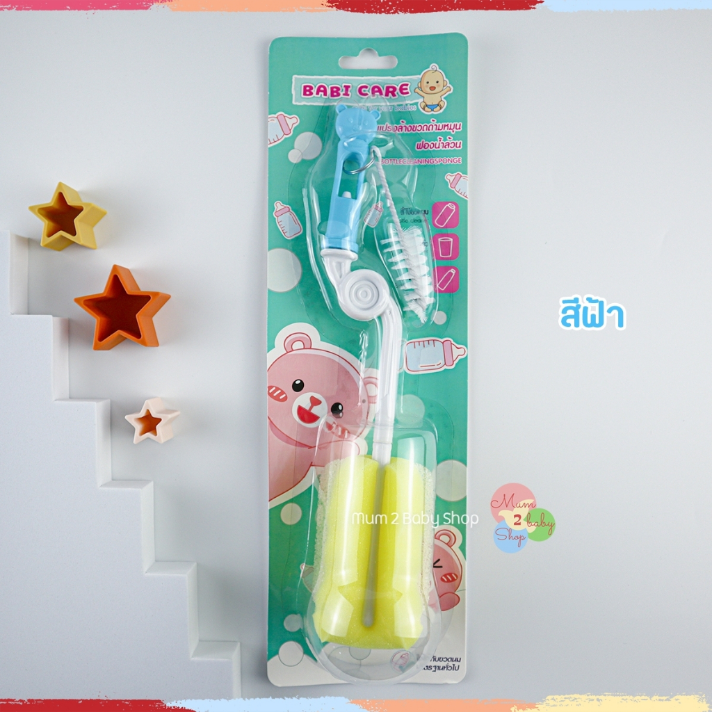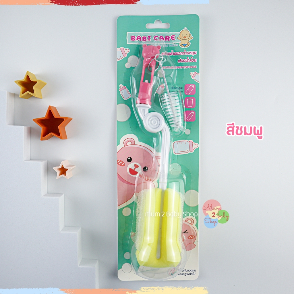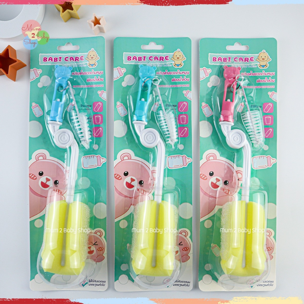 แปรงล้างขวดนมพร้อมแปรงล้างจุก หัวฟองน้ำ หมุนได้360องศา เบบี้แคร์