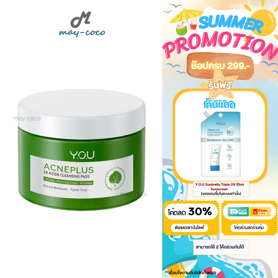ถูก/แท้/มีไลฟ์ มาสก์ YOU Y.O.U AcnePlus 5X Acids Cleansing Pads คลีนซิ่งแพด บำรุงผิวหน้า ลดสิว ปลอมประโลมผิว ชุ่มชื้น