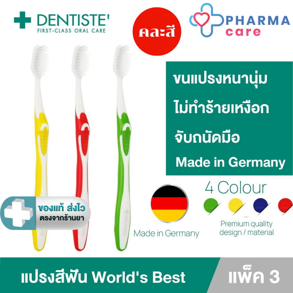 (แพค 3 คละสี) Dentiste' Germany's World's Best Toothbrush เดนทิสเต้ แปรงสีฟันเวิลด์เบสเยอรมัน ขนแปรงหนานุ่ม[PC]