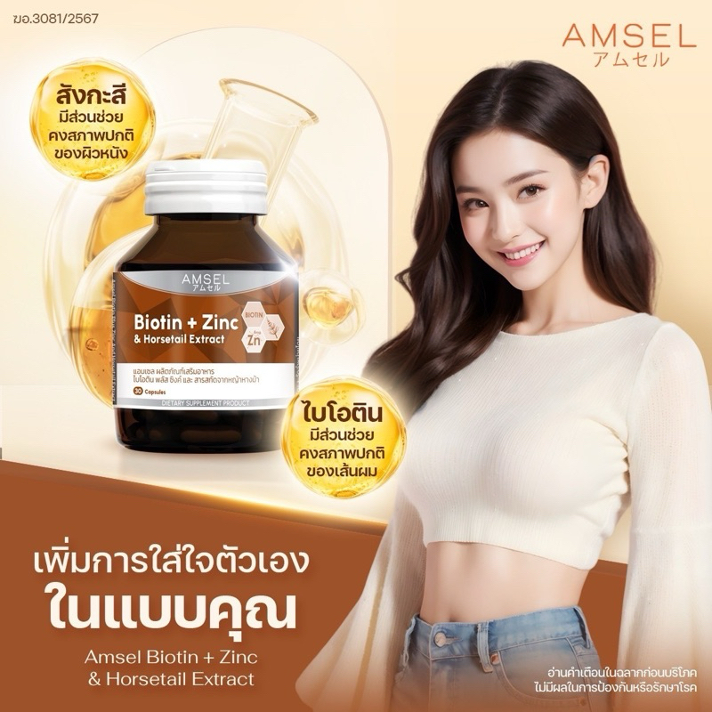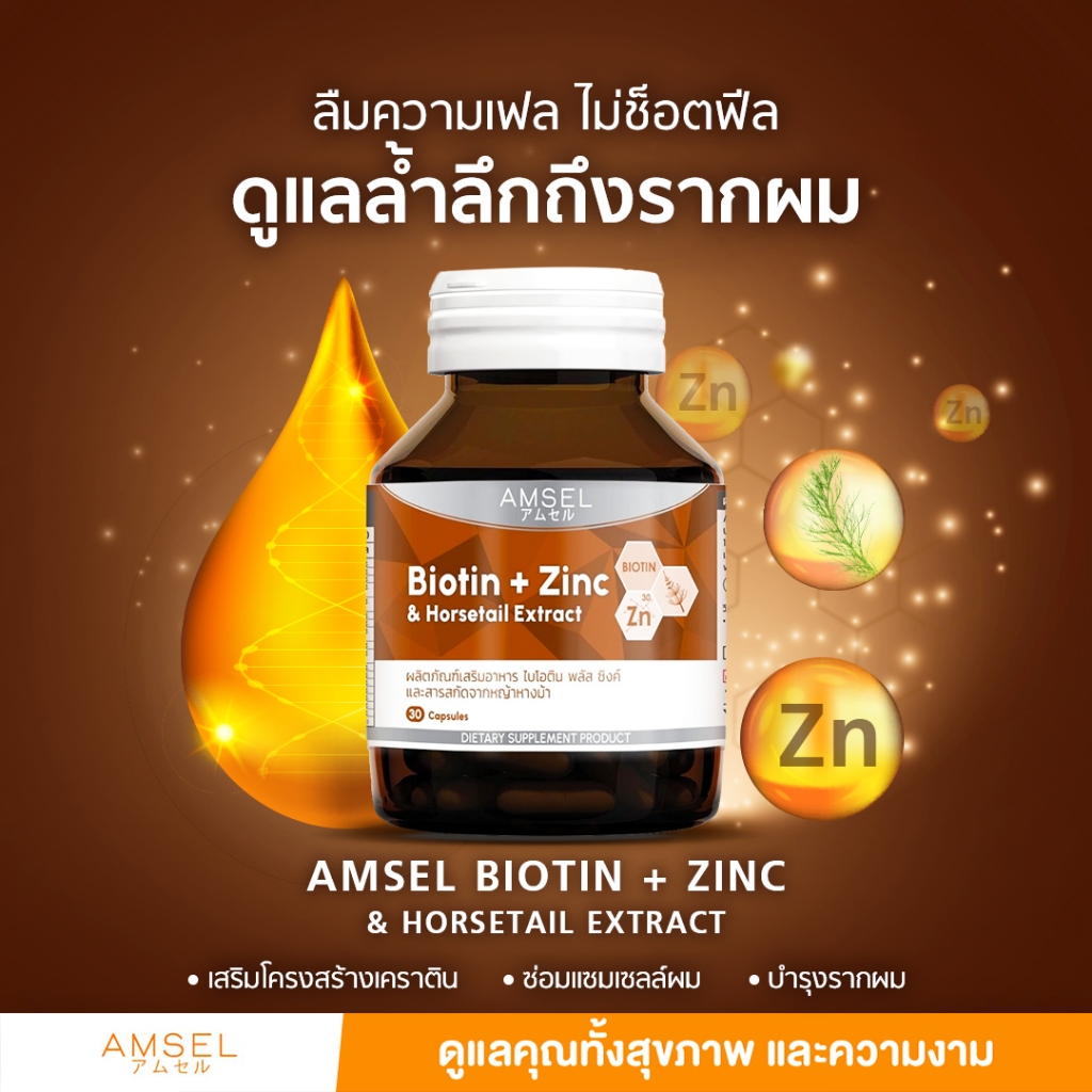 ซื้อ 3ขวดคุ้ม Amsel Biotin Zinc & Horsetail Extract แอมเซล ไบโอติน ซิงค์ และสารสกัดจากหญ้าหางม้า 30 แคปซูล