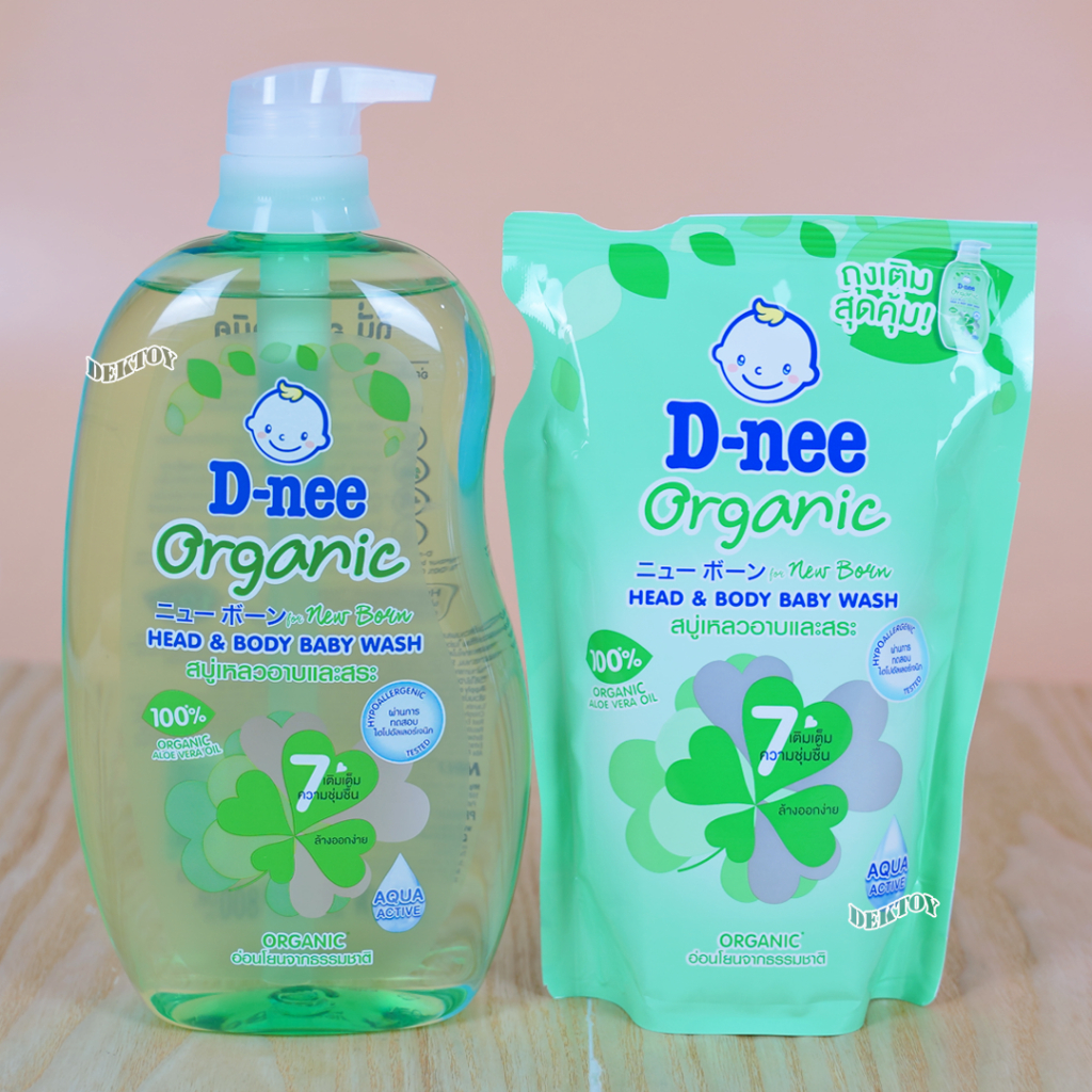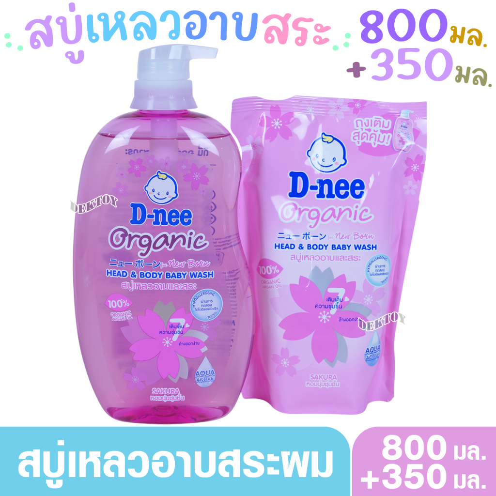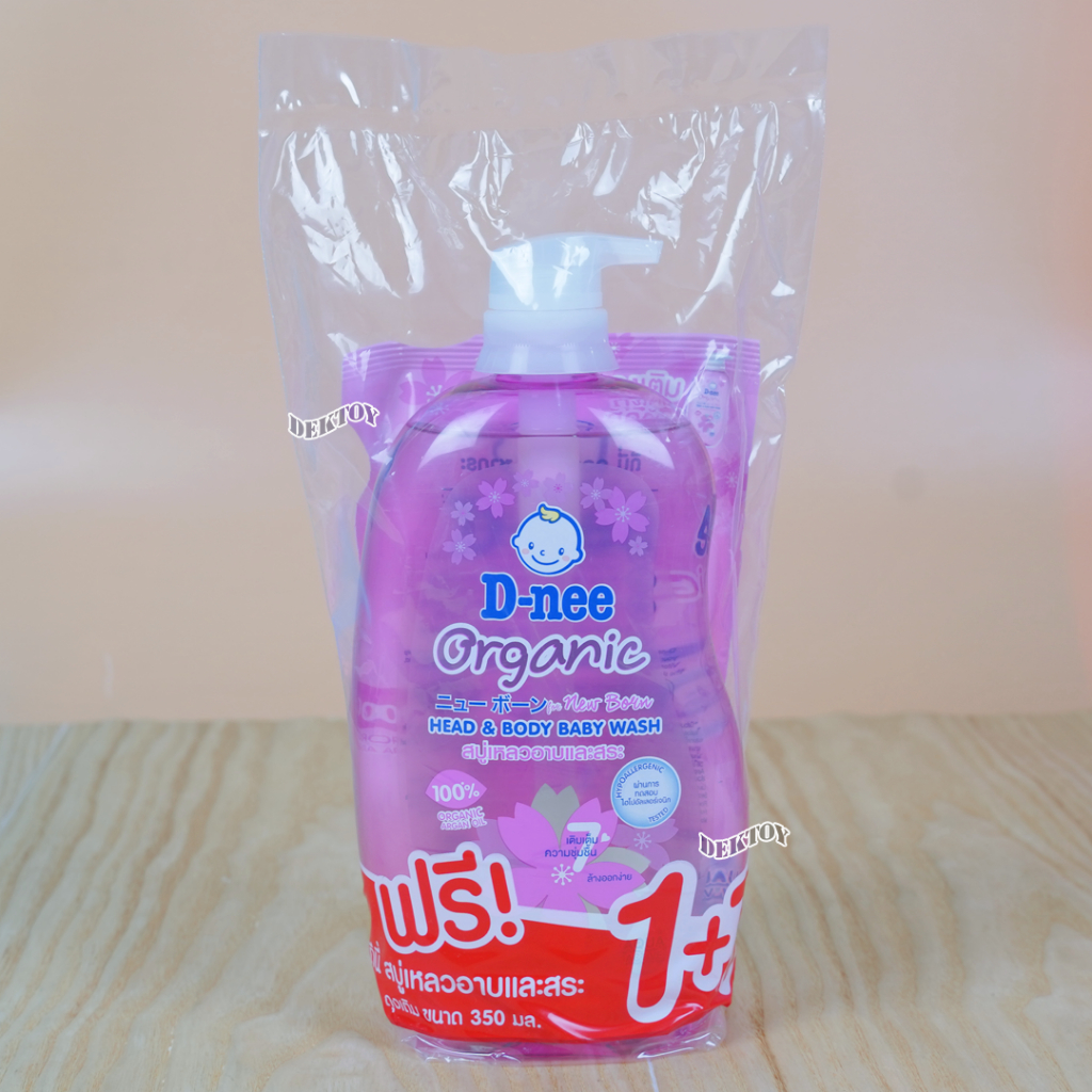 D-nee ดีนี่ ออร์แกนิค สบู่เหลวอาบและสระผม ฟอร์นิวบอร์น 750+350มล.หัวปั๊ม