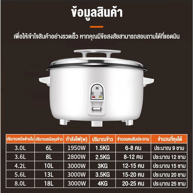 Rice Cookers หม้อหุงข้าว 6-10ลิตร หม้อหุงข้าว หม้อหุงข้าวขนาดใหญ่ ไฟฟ้าเชิงพาณิชย์ หม้อหุงข้าวไฟฟ้าขนาดใหญ่
