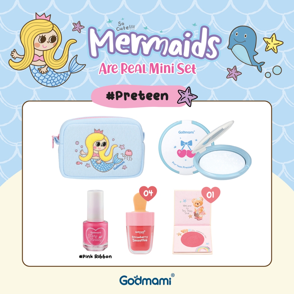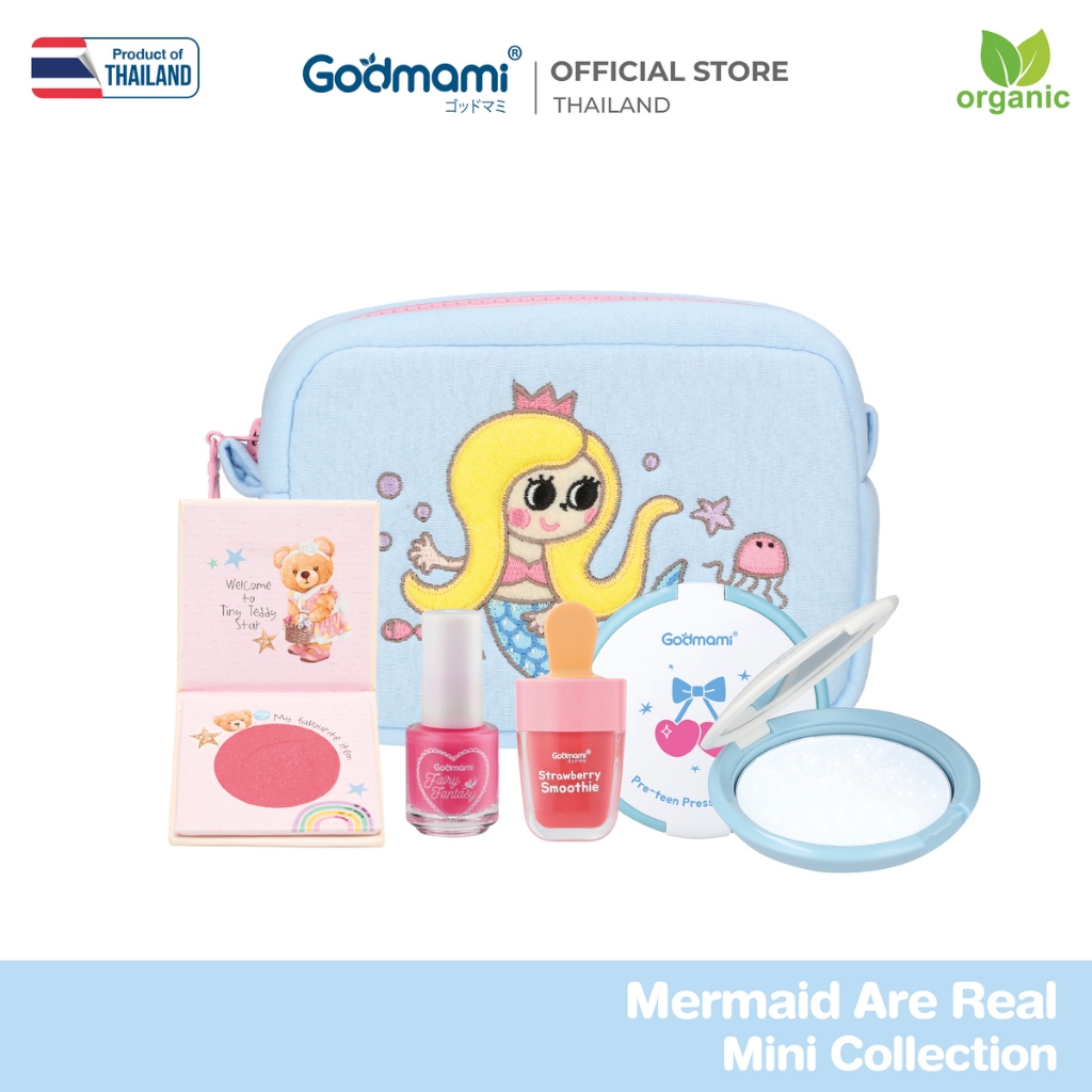 Godmami ชุดเครื่องสำอางออร์แกนิกสำหรับเด็ก เมอร์เมด อาร์ เรียล มินิ ค อลเลคชัน