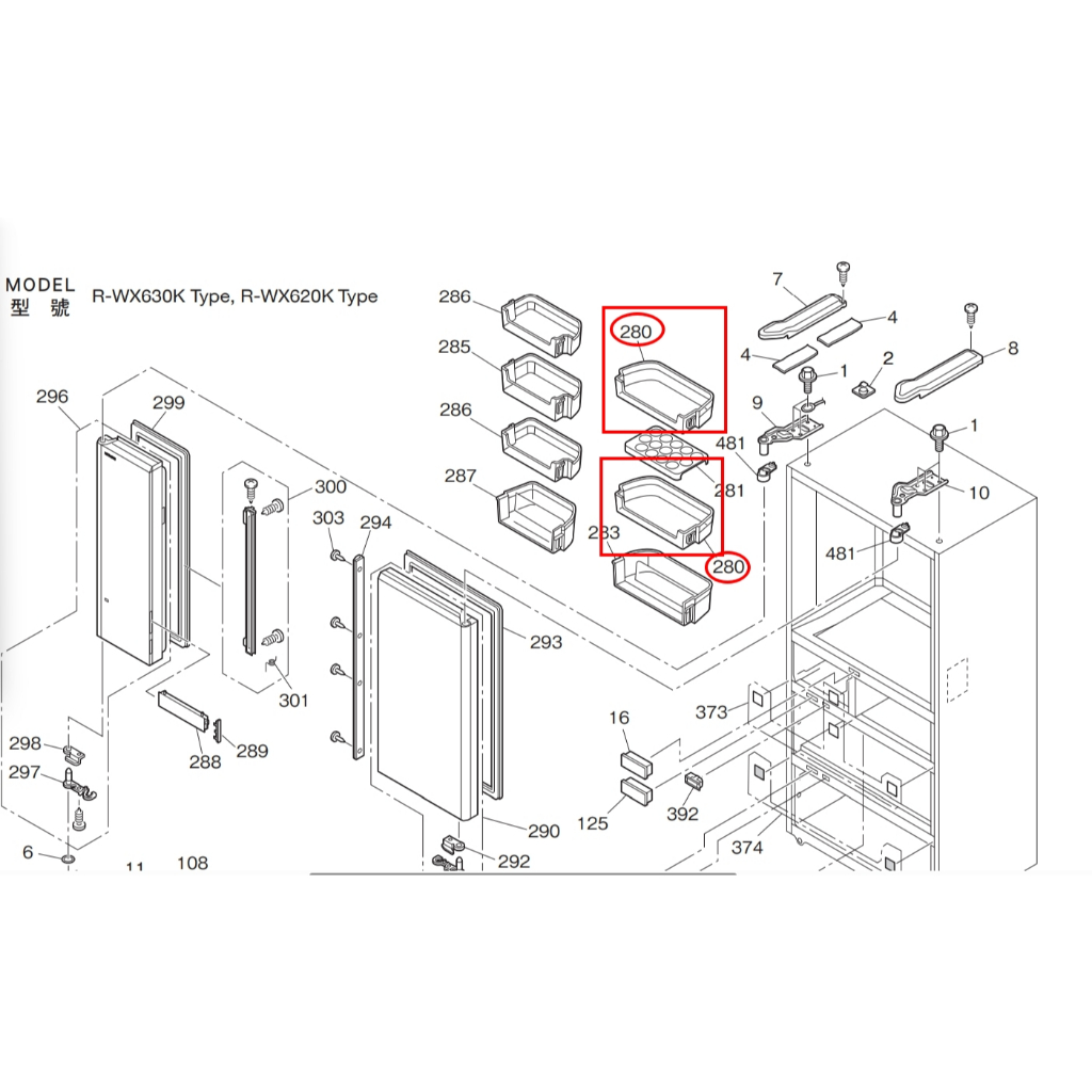 อะไหล่เเท้ศูนย์/ชั้นวางของข้างตู้เย็น/DOOR POCKET(RIGHT)/R-XG6700H 012/ใช้กับรุ่นหลากหลายสอบถามได้ค่ะ