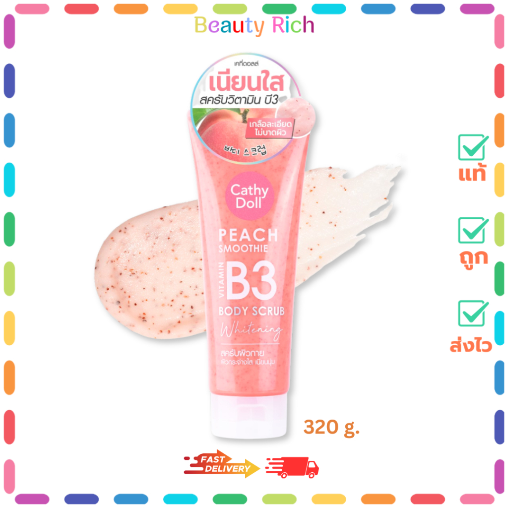 (1 หลอด) Cathy Doll (สูตร พีช) เคที่ดอลล์ เกลือสครับขัดผิวเม็ดละเอียด (320 g.)