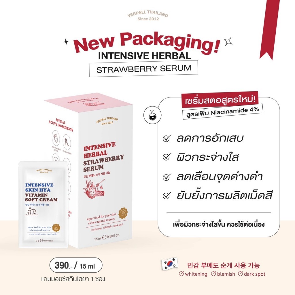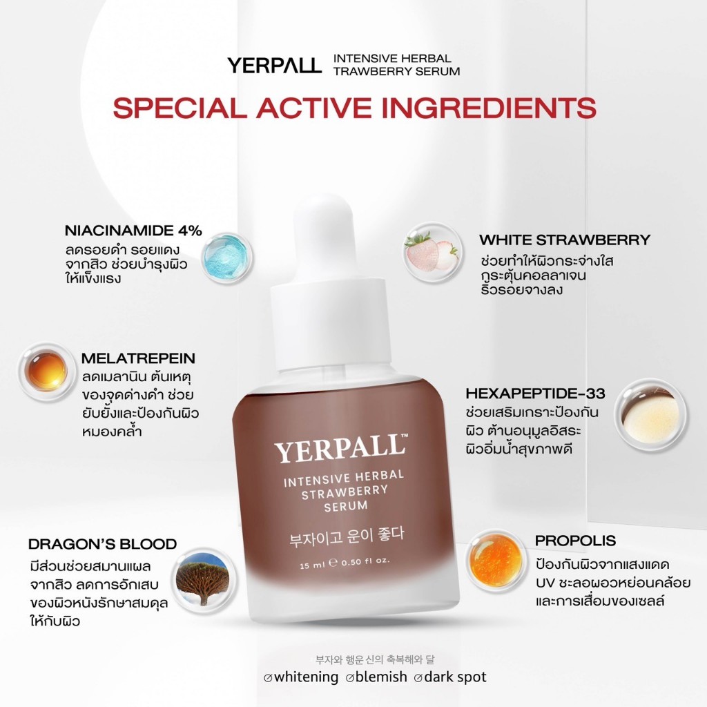 พร้อมส่ง !!! เซรั่มสตอเบอรี่ แพคเกจใหม่ yerpall มีโฮโลแกรมเช็คกันปลอม มีบัตรตัวแทน เซรั่มลดรอยสิว