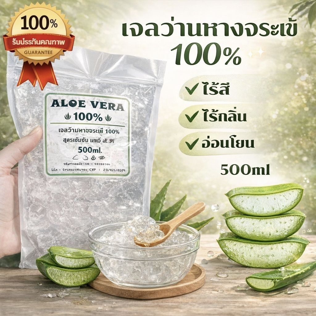 เจลว่าน ✅ว่านหางจระเข้ ของแท้ เจลใส 100% ALOE VERA GEL แบบถุง 500 ml. สูตรลดสิว ออริจินอล