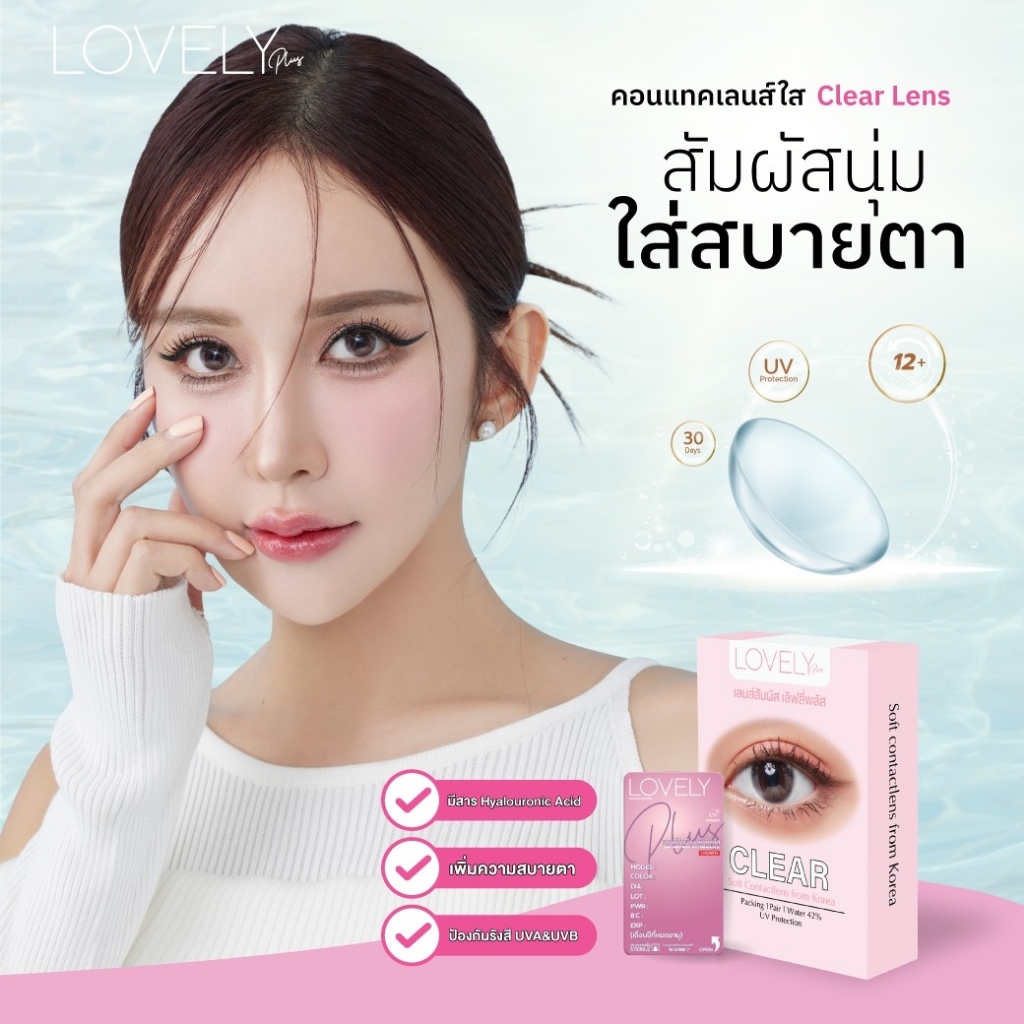 (1 คู่) Lovelyplus รุ่น Lovelyplus Clear คอนแทคเลนส์ เลนส์ใส ป้องกัน UV และแสงสีฟ้า (แถมตลับ)