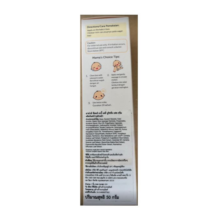 Mama's Choice Baby Daily Nourishing Face Cream 50 g ครีมทาหน้าเด็ก สูตร Organic บำรุงเพิ่มความชุ่มชื้น อ่อนโยนต่อผิว