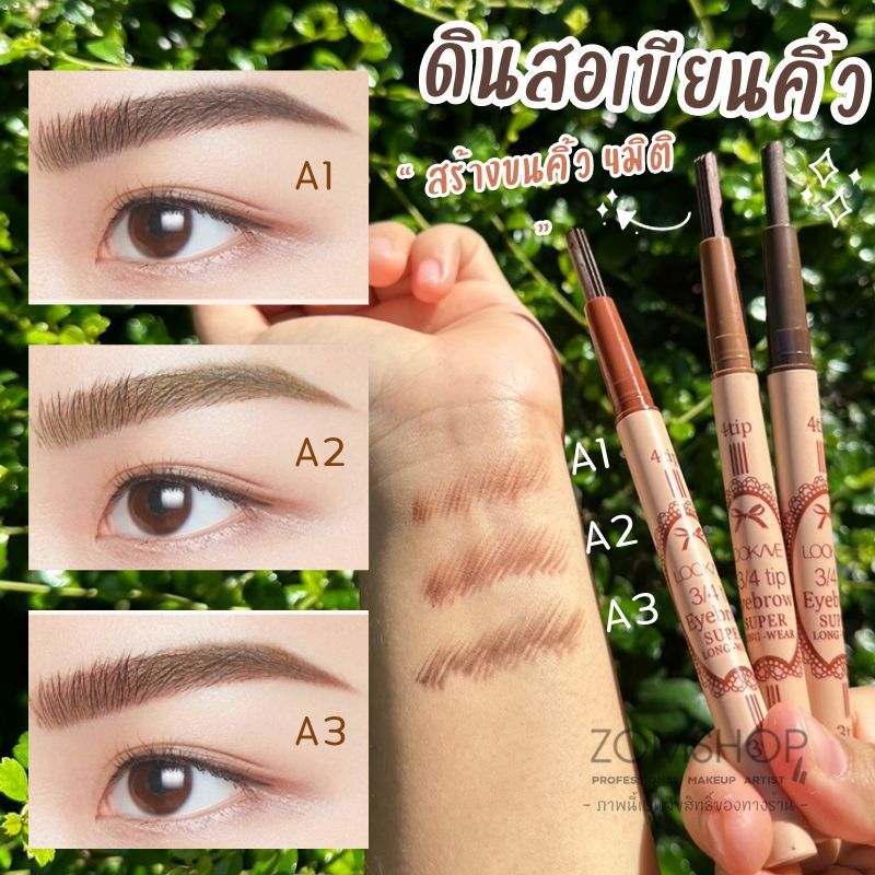 LOOK ME【ดินสอเขียนคิ้ว หมุนออโต้】สร้างขนคิ้ว คิ้ว3มิติ คิ้ว4มิติ 【กันน้ำ กันเหงื่อ】LOOK ME 3/4 tip Eyebrow pencil