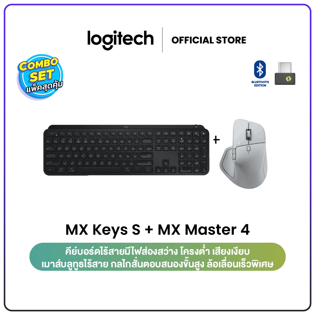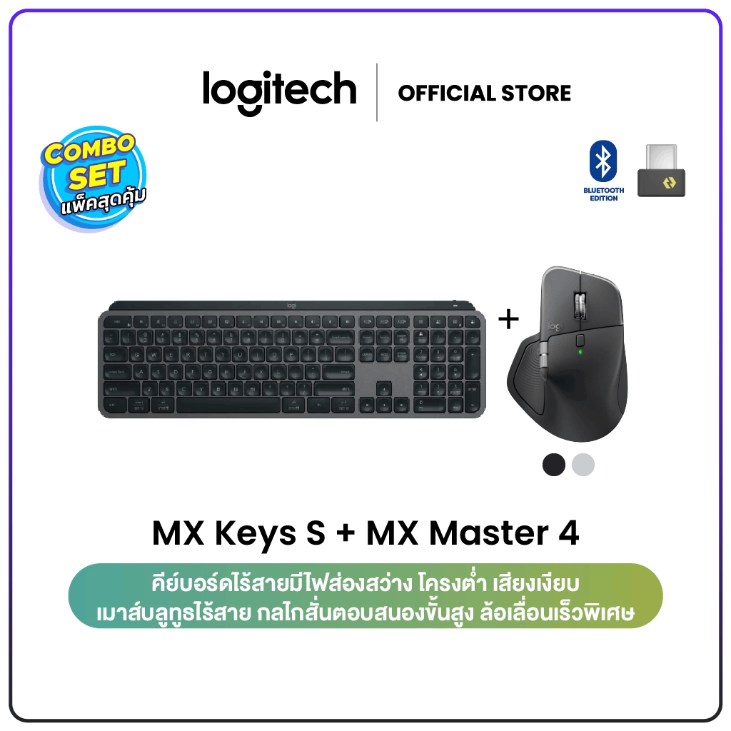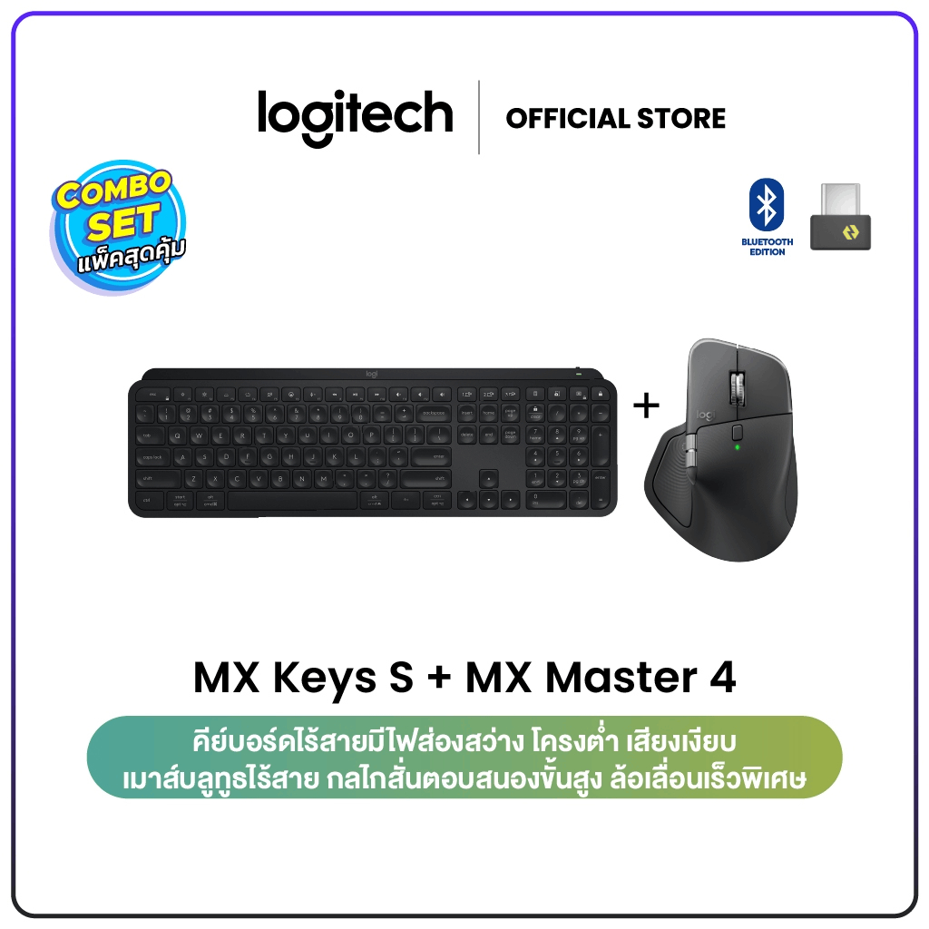 Logitech MX Keys S Advanced Wireless คีย์บอร์ดไร้สาย TH/EN + MX Master 4 Ergonomic Wireless Mouse เมาส์บลูทูธไร้สาย