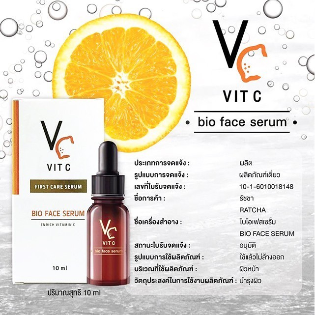 Vc Vit C Bio Face Serum First Care Serum 10 ml. เซรั่มวิตตามินซี ไบโอเฟส เซรั่มน้อ