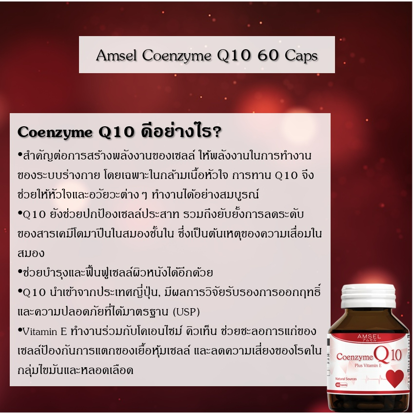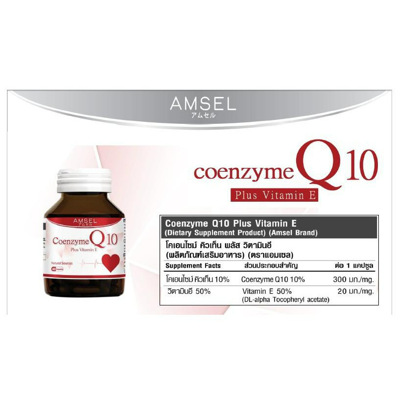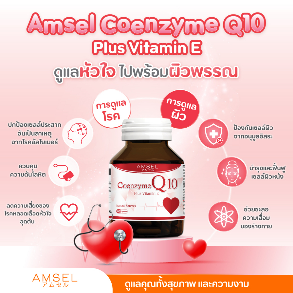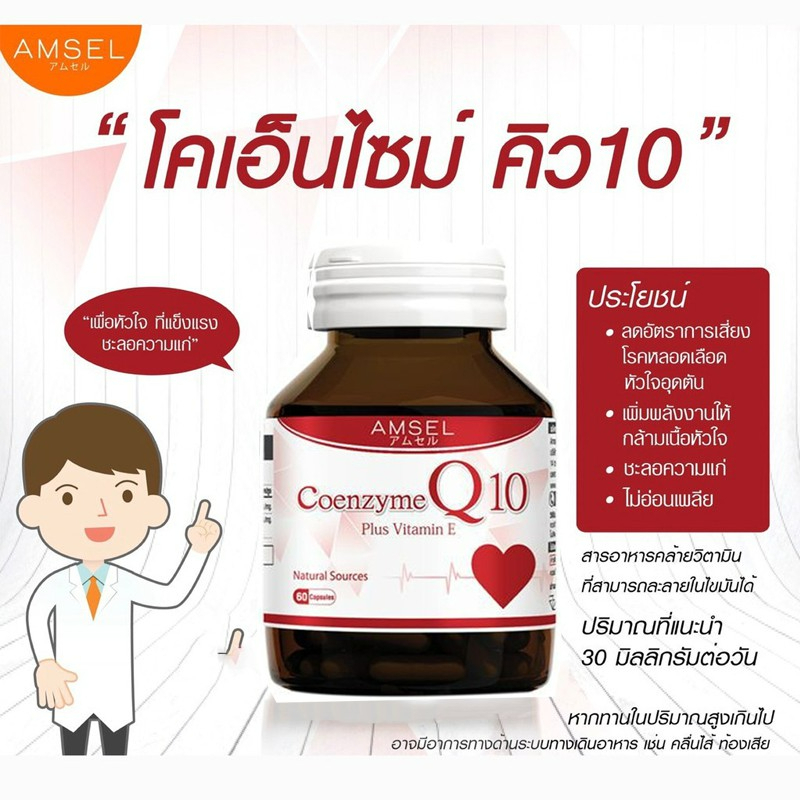 3ขวด Amsel Coenzyme Q10 Plus Vitamin E แอมเซล โคเอนไซม์ คิวเท็น พลัส วิตามินอี (60 แคปซูล)