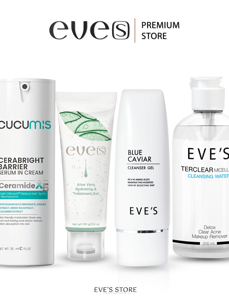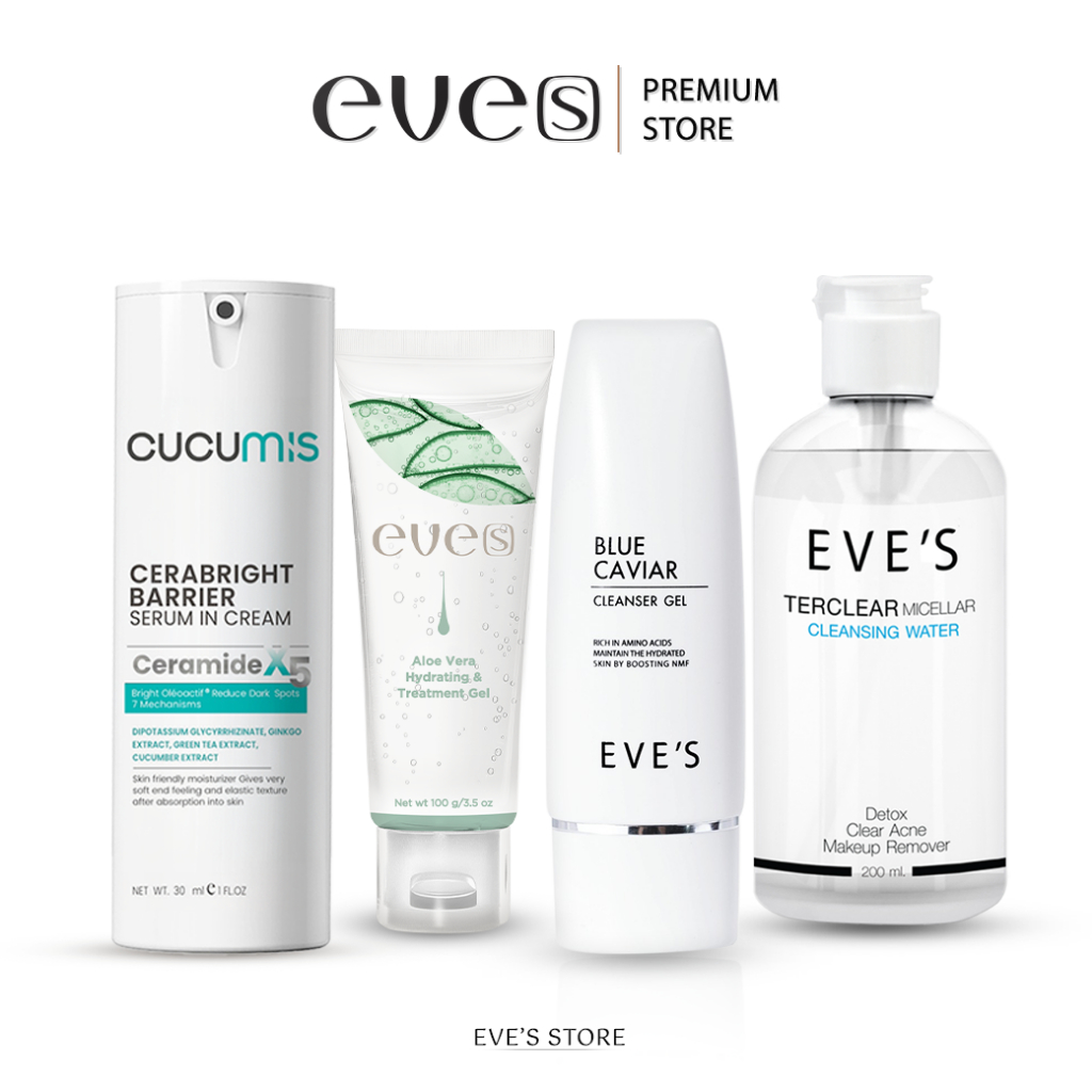 EVES อีฟส์ เซตคลีนผิว เสริมเกราะผิว เซราไบร์ท คลีนซิ่ง เจลล้างหน้า เจลอโอเวร่า ชุ่มชื่น พักผิวหน้า ผิวหน้ากระจ่างใส