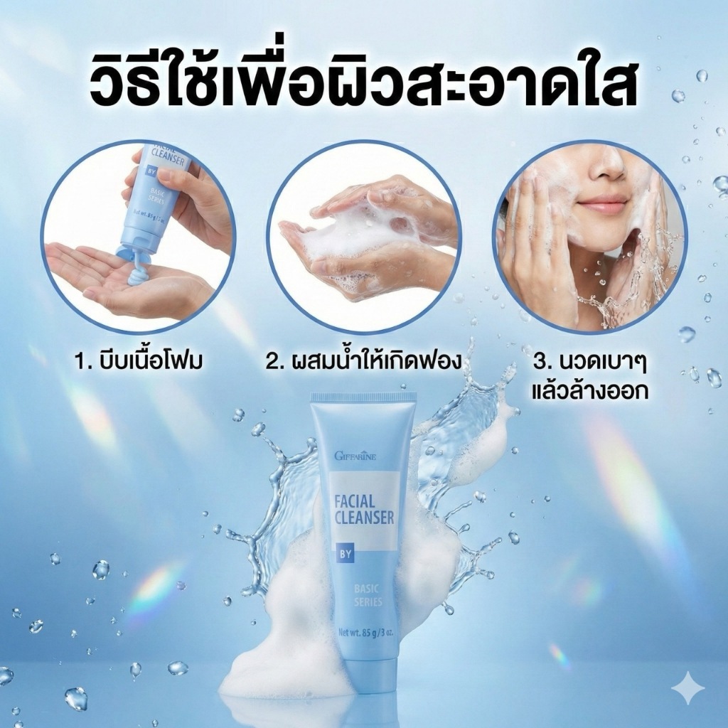 ครีมล้างหน้า ครีมเนื้อนุ่ม ทำความสะอาดเครื่องสำอาง สิ่งสกปรกได้อย่างหมดจด Giffarine Facial Cleanser