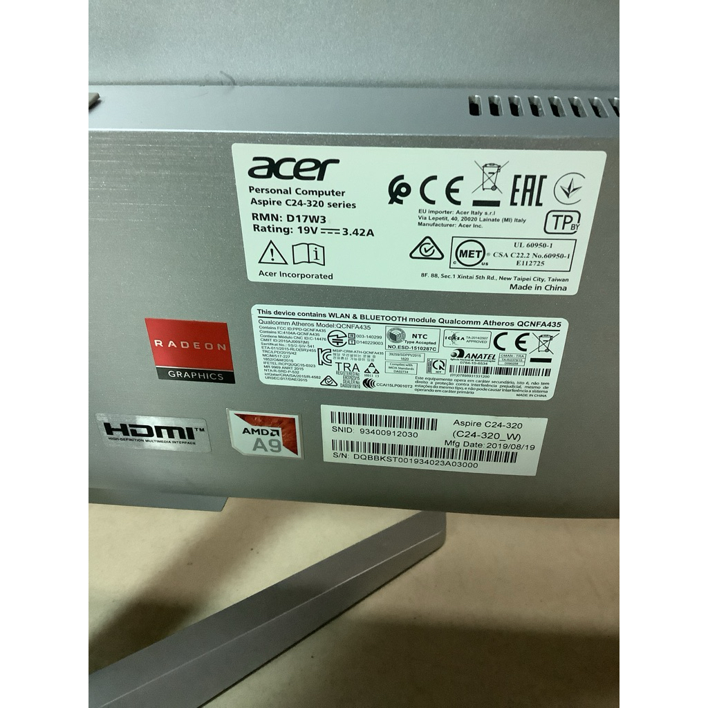 จอแตก ไม่มีหม้อแปลง ไม่แน่ใจว่าใช้ได้ไหม คอม All in one เอเซอร์ (Acer) Aspire C24-320 หน้าจอ 24“ วันที่ผลิต 2019/08/19,