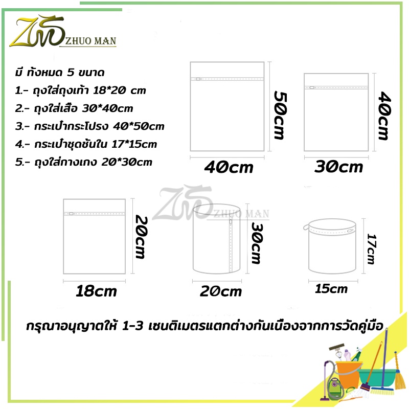 ถุงตาข่ายซักผ้า ช่วยถนอมผ้าและรักษาทรงของเสื้อผ้า ใช้งานง่าย ไม่ยุ่งยาก มี 5 ขนาด ให้เลือกใช้