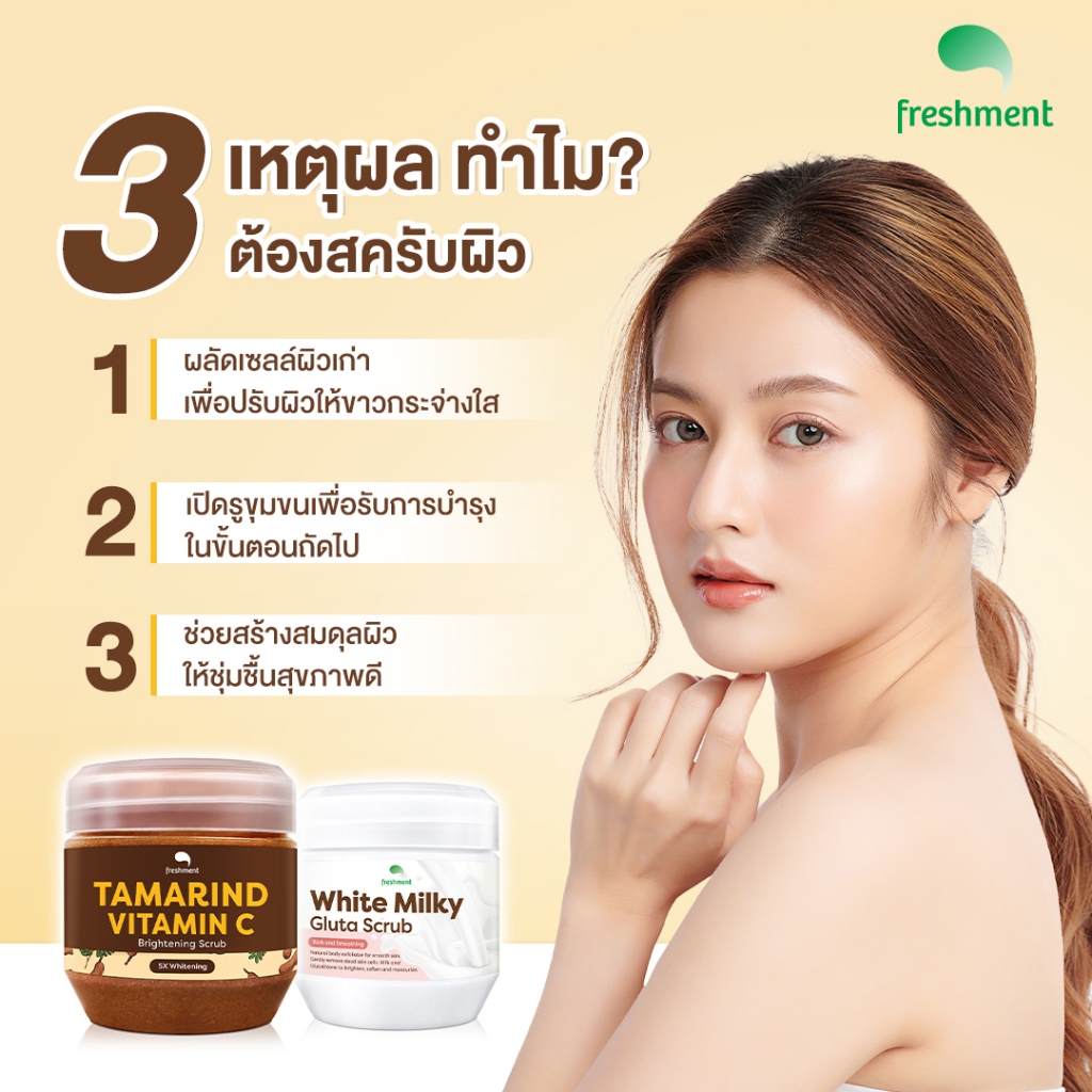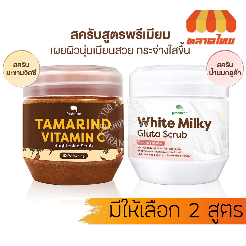 สครับขัดผิว เฟรชเม้นท์ สูตรน้ำนมกลูต้า/ มะขาม Freshment Tamarind Vitamin C Brightening/ White Milky Gluta Scrub 700g.
