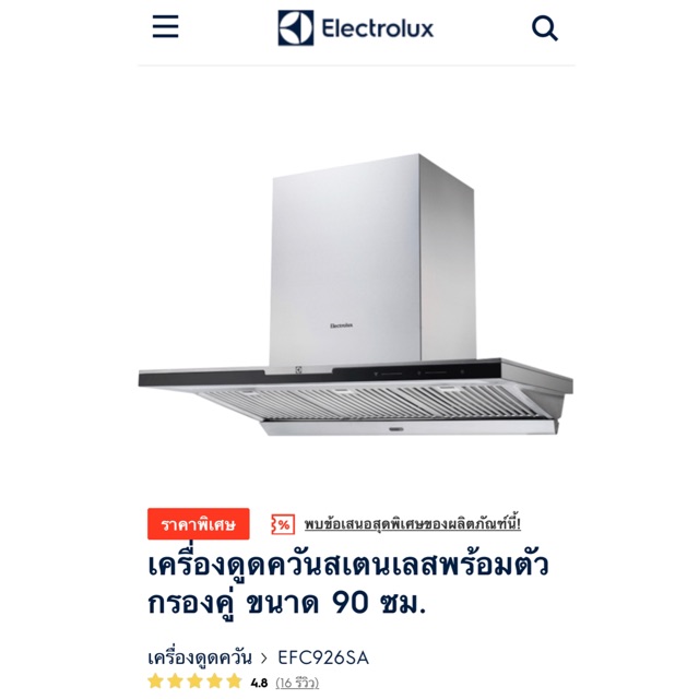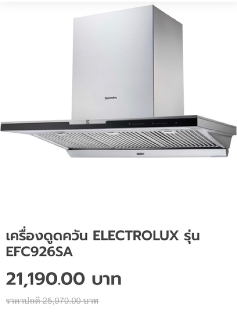 🔥เคลียล้างสต๊อค🔥เครื่องดูดควัน ELECTROLUX รุ่น EFC926SA ของใหม่ แกะกล่อง ขายขาดทุนเลิกกิจการ หมดแล้วหมดเลย