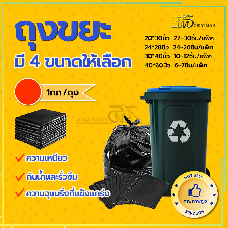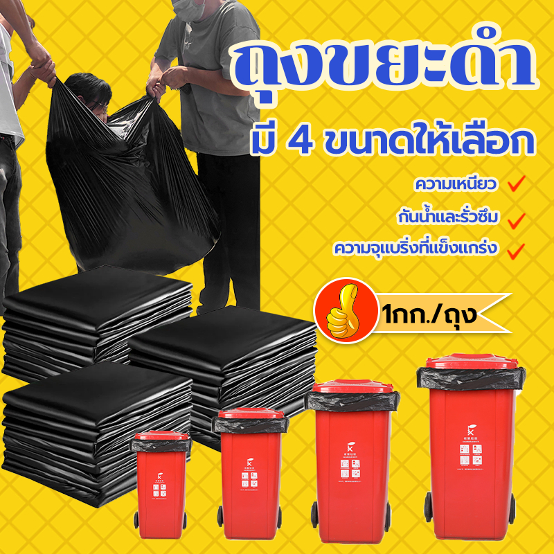 ถุงขยะดำ 1 กิโลกรัม แบบหนา เหนียวทนสุดๆ ไม่รั่วซึมง่าย มี 7 ขนาดให้เลือกใช้ได้ตามถังขยะของลูกค้า