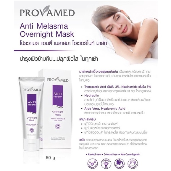 Provamed Anti Melasma Over Night Mask 50g โปรวาเมดแอนตี้ เมลาสมา โอเวอร์ไนท์มาส์ก