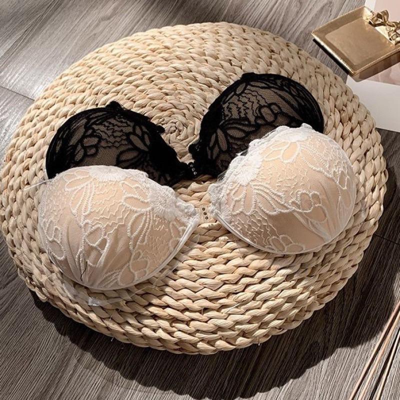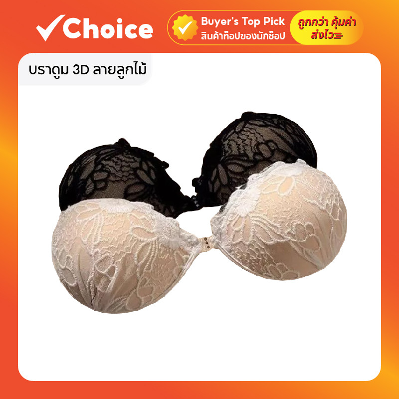 บราดูม 3D ลายลูกไม้ บราเจ้าสาว พร้อมสายใส ฟองน้ำเรียบ หนา 3 ซม. ใส่ได้ทั้งแบบมีสาย/ไร้สาย สีดำ/ขาว ไซซ์ A-B
