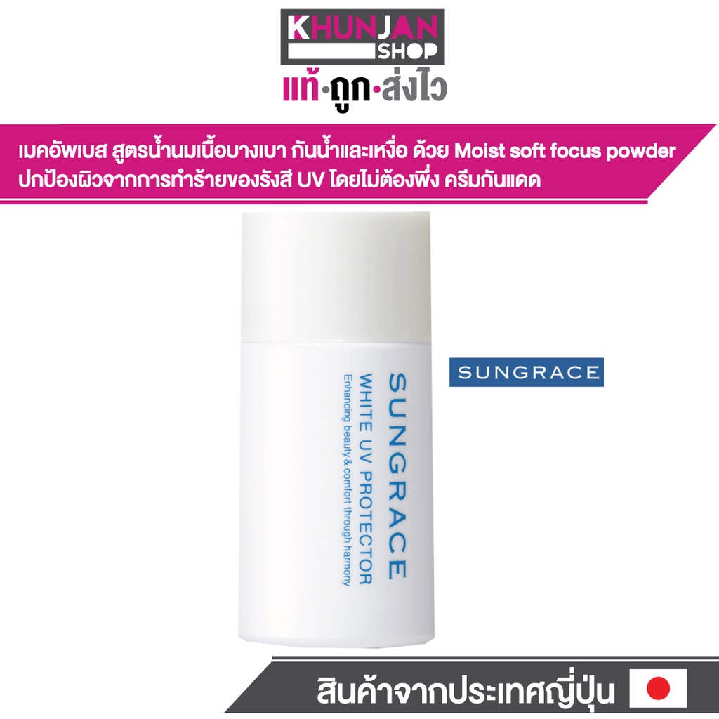 SUNGRACE WHITE UV PROTECTOR SPF42 / PA++ ปริมาณสุทธิ 25 มล. เมคอัพเบส