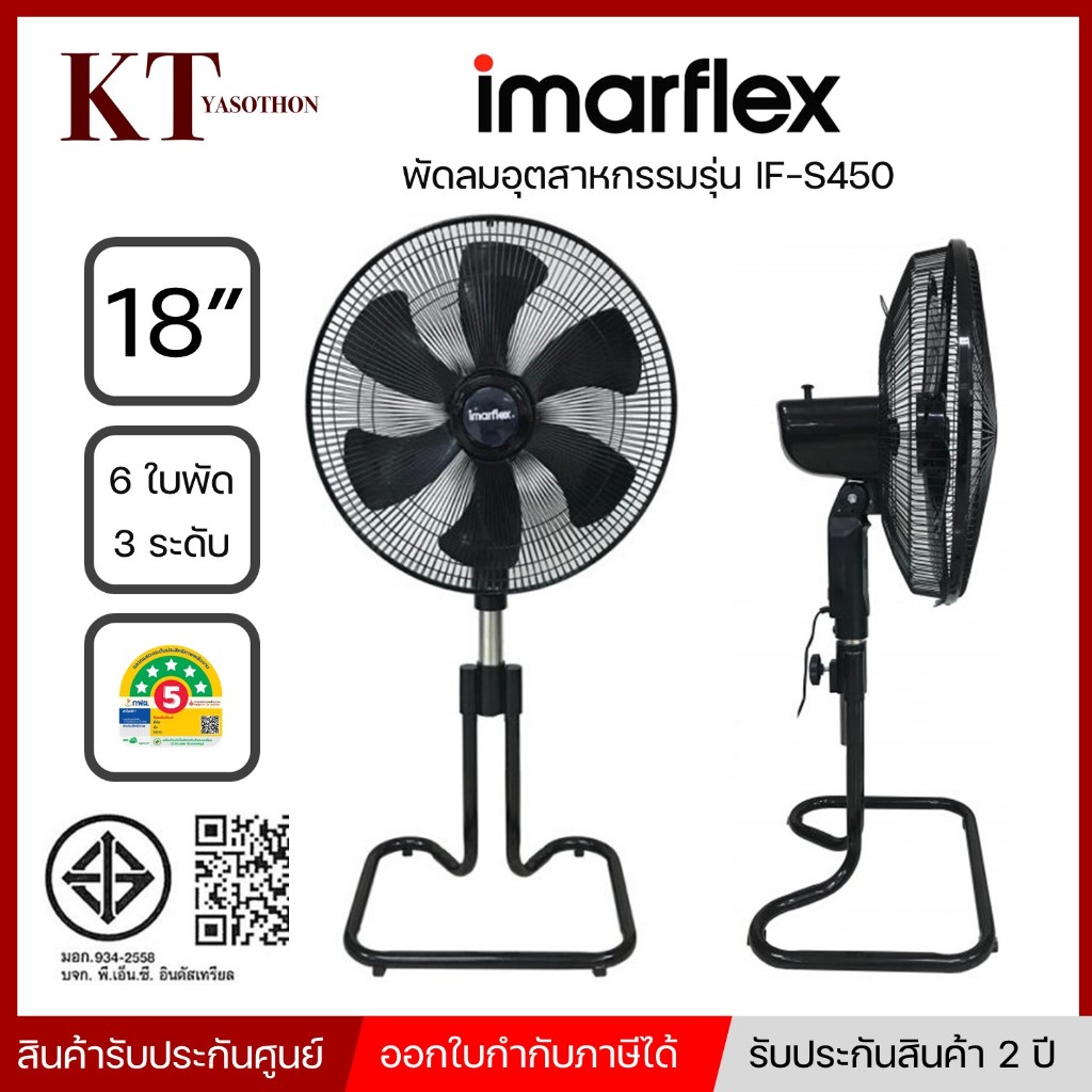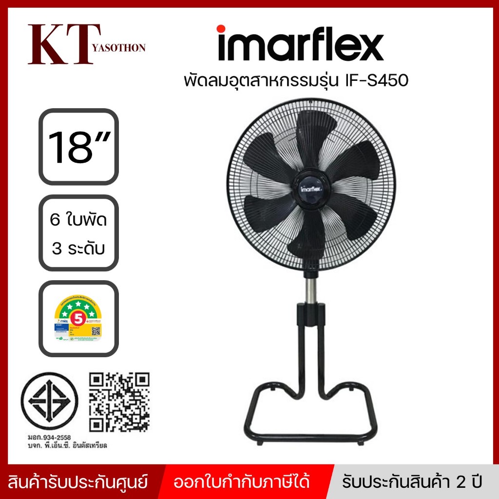 IMARFLEX พัดลมอุตสาหกรรม ชนิดตั้งพื้น 18 นิ้ว 6 ใบพัดพลาสติก สีดำ รุ่น IF-S450
