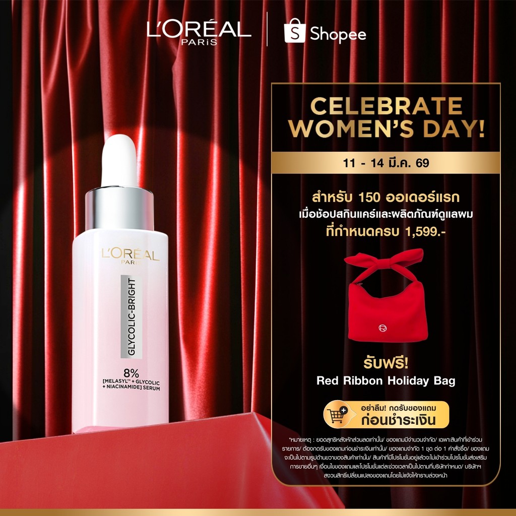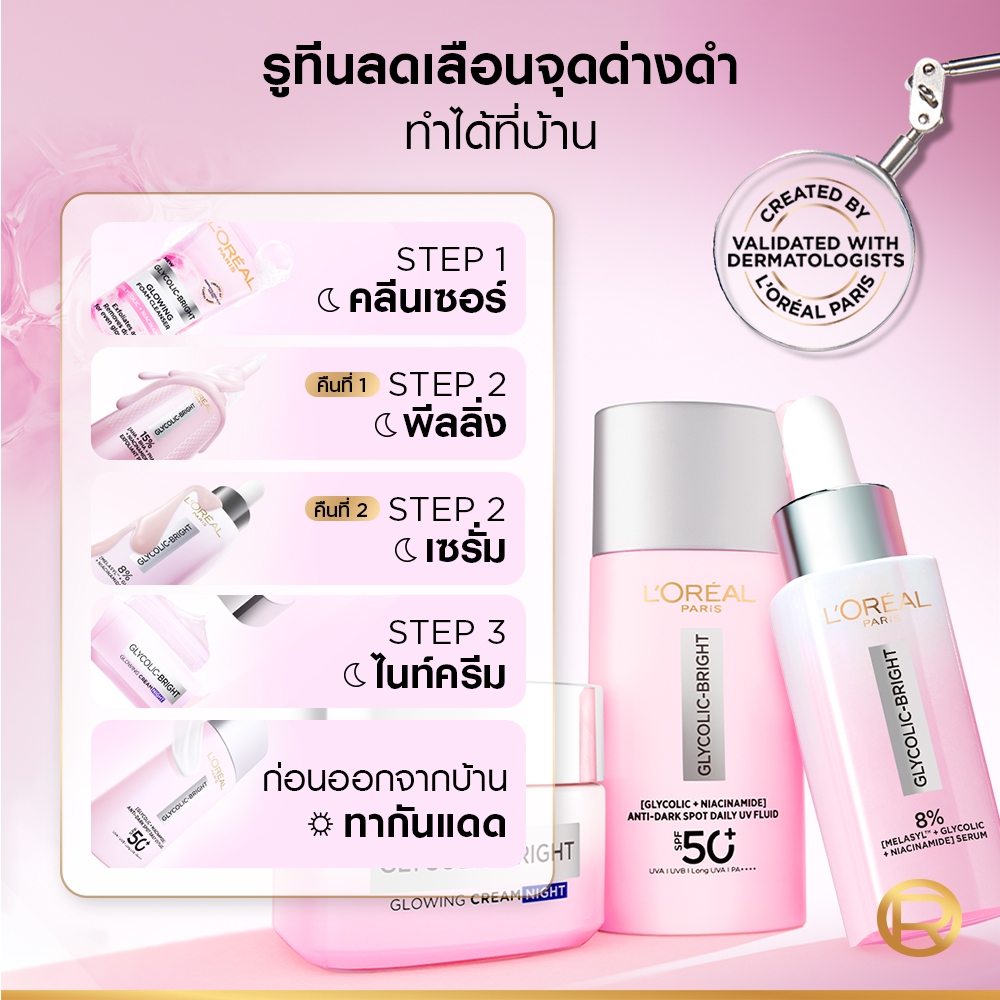 ลอรีอัล ปารีส L'Oréal Paris Glycolic Bright Anti-Dark Spot Brightening Serum 30ml เซรั่มผิวโกลว์กระจ่างใส ลดจุดด่างดำ