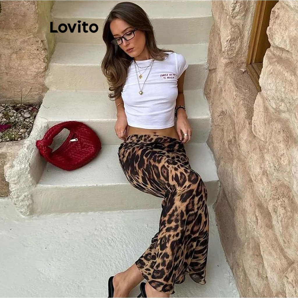 Lovito กระโปรงหรูหรา กระโปรงสายโครงสร้างเสือดาวสําหรับผู้หญิง LNL62348