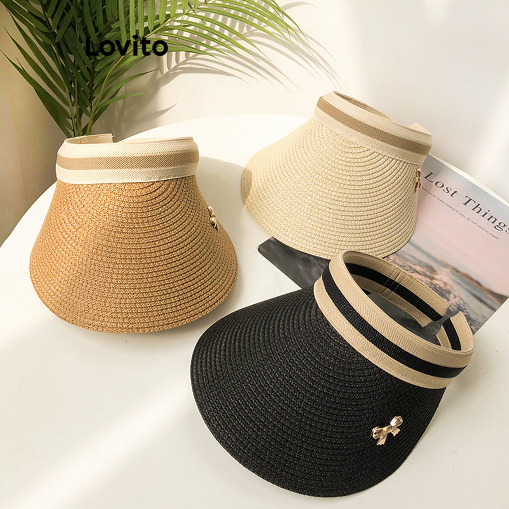 Lovito หมวกผู้หญิง แต่งโบว์ บล็อกสี สีเรียบ สไตล์ลำลอง LFA28359