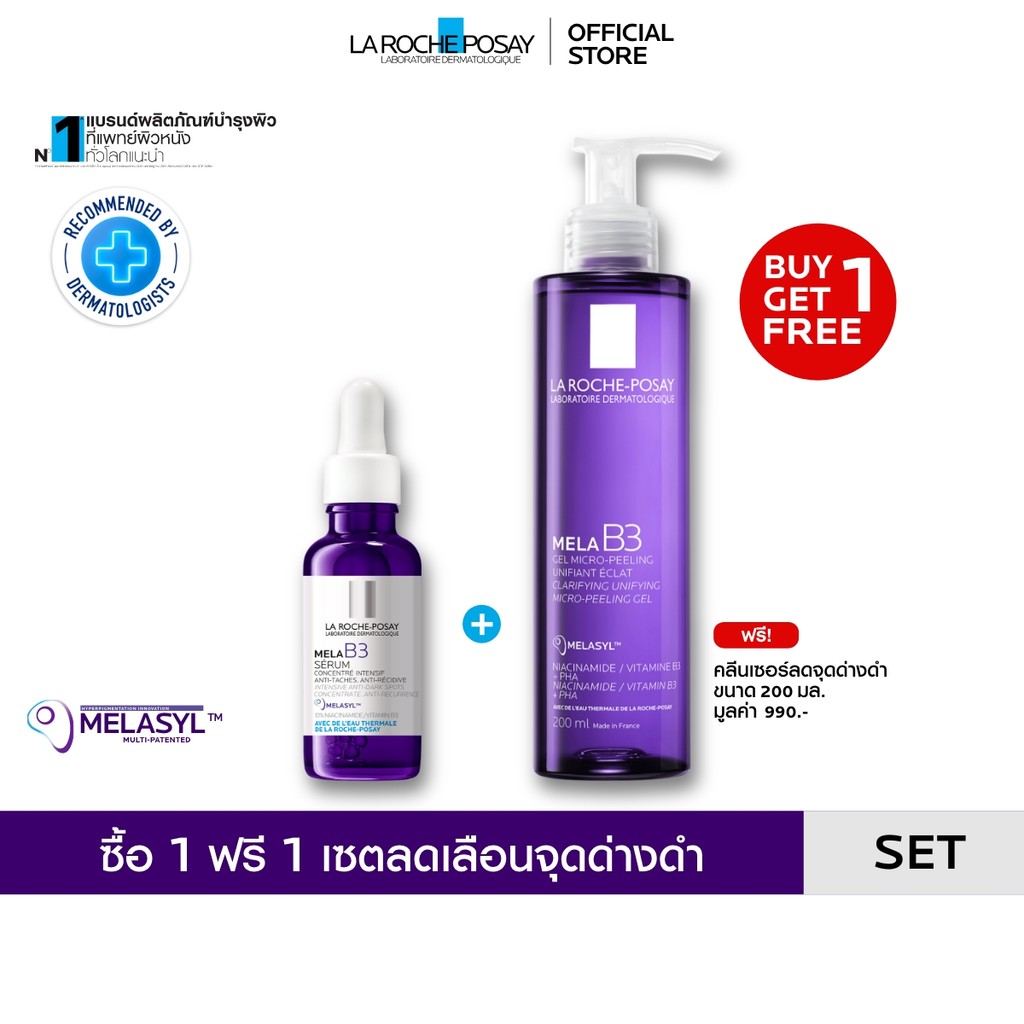 [1 แถม 1] ลา โรช-โพเซย์ La Roche-Posay Mela B3 Micro Peeling Gel 200ml. + Mela B3 Serum 30ml. เพื่อผิวกระจ่างใส
