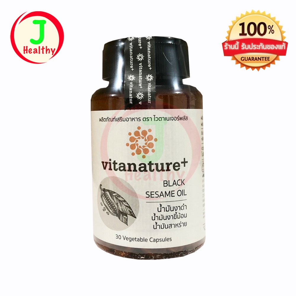 Vitanature+ ไวตาเนเจอร์พลัส น้ำมันงาดำ /สารสะกัดขมิ้นชัน /ตรีผลา /คาโมมายล์ (1 ขวด 30 แคปซูล)