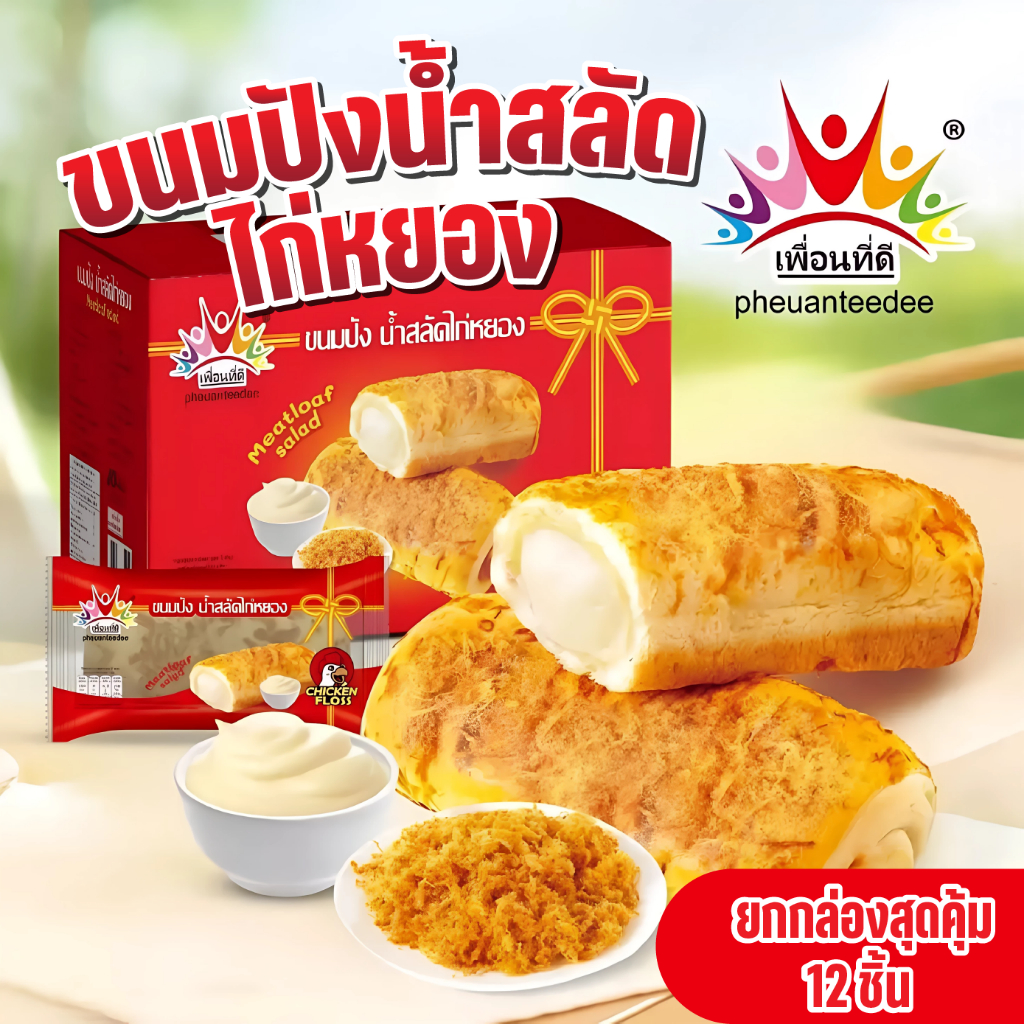 ขนมปังไก่หยองน้ำสลัด น้ำสลัดเข้มข้น หวาน มัน ขนมปังนุ่มมาก ทานน้ำสลัดเข้ากันมาก (ขายยกกล่อง) 1 กล่องมี 12 ชิ้น พร้อมส่ง