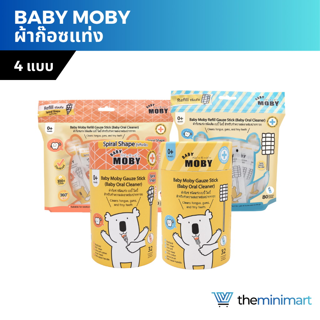 Baby MOBY เบบี้ โมบี้ ผ้าก๊อซ ผลิตจากฝ้ายธรรมชาติ 100% ผ้าก๊อซเด็ก ผ้าก๊อซเช็ดลิ้น