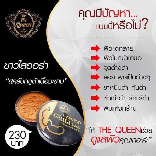 The Queen Tamarind Gluta Scrub สครับ กลูต้ามะขาม เนื้อมะขาม เดอะควีน ของแท้ สคลับกลูต้ามะขาม ผิวสวย ขาว สครับมะขาม