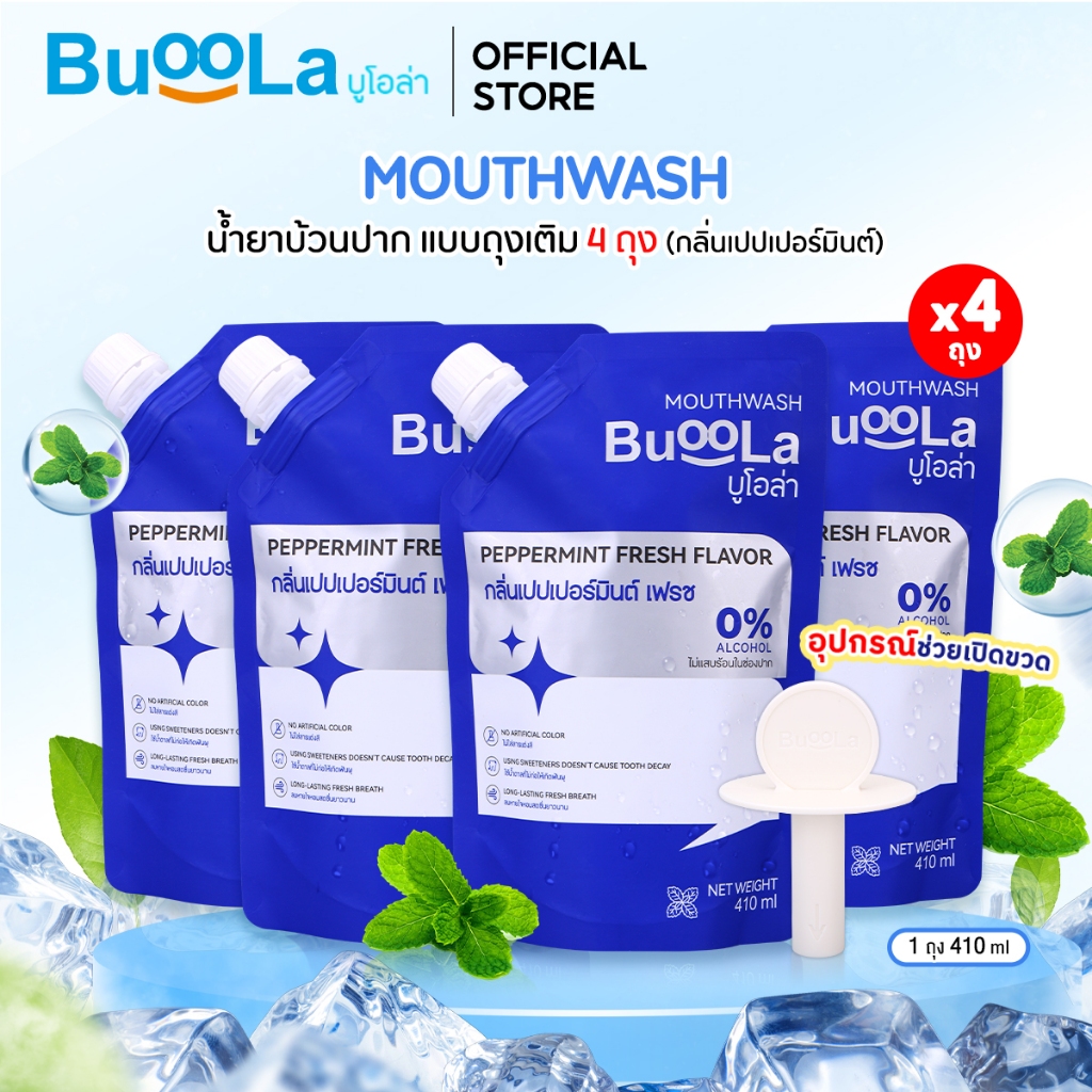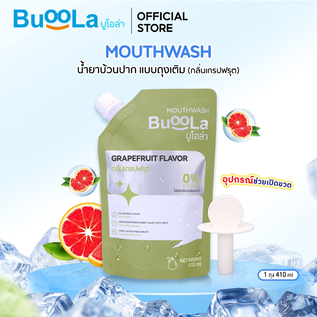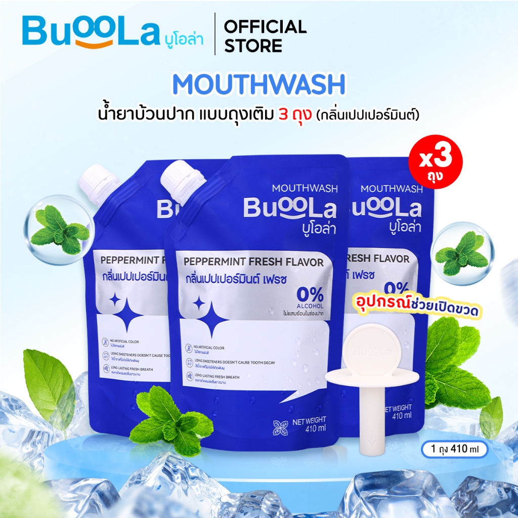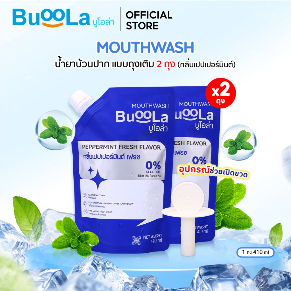 Buoola น้ำยาบ้วนป ากแบบถุงเติม (แถมอุปกรณ์ช่วยเปิดขวด) ช่วยระงับกลิ่นปาก ปากหอม สะอาด ลมหายใจหอมสดชื่น