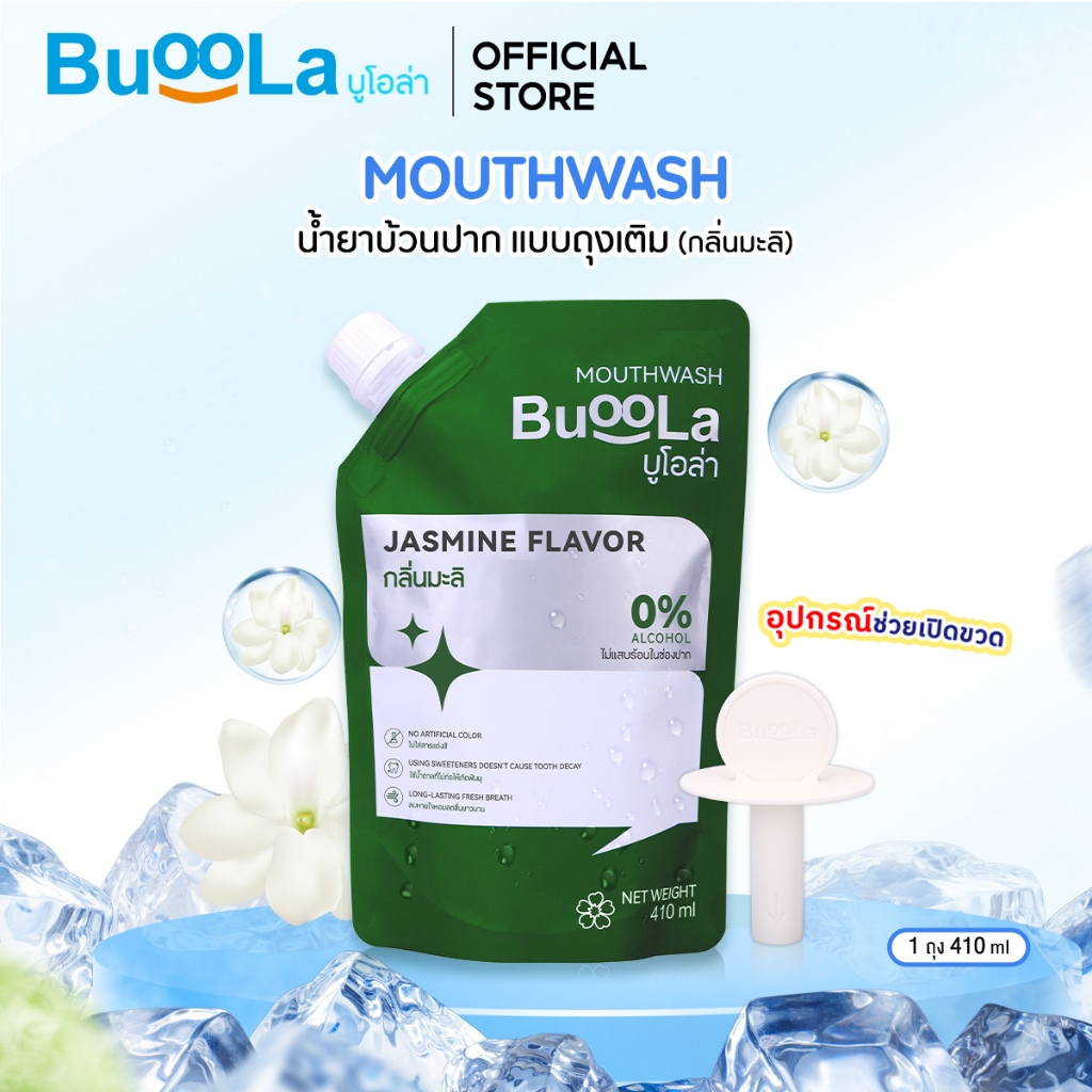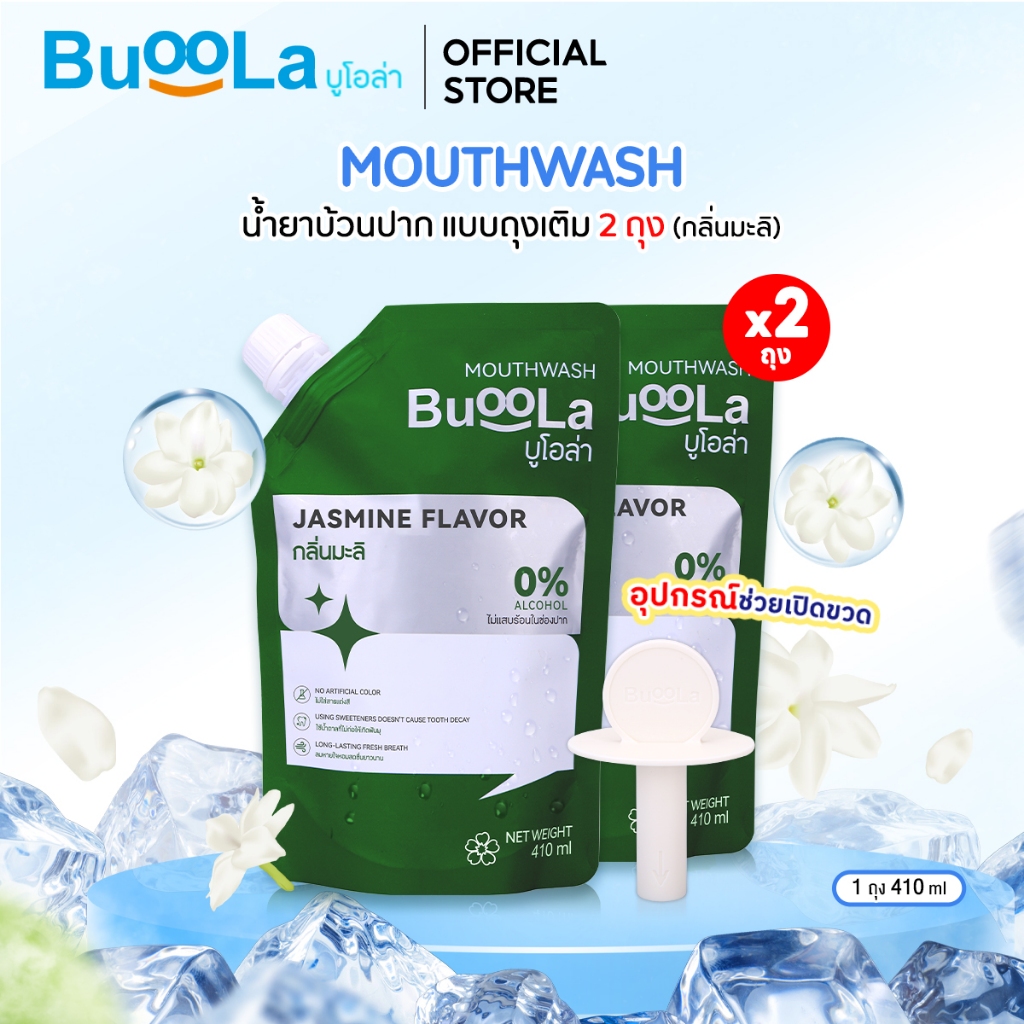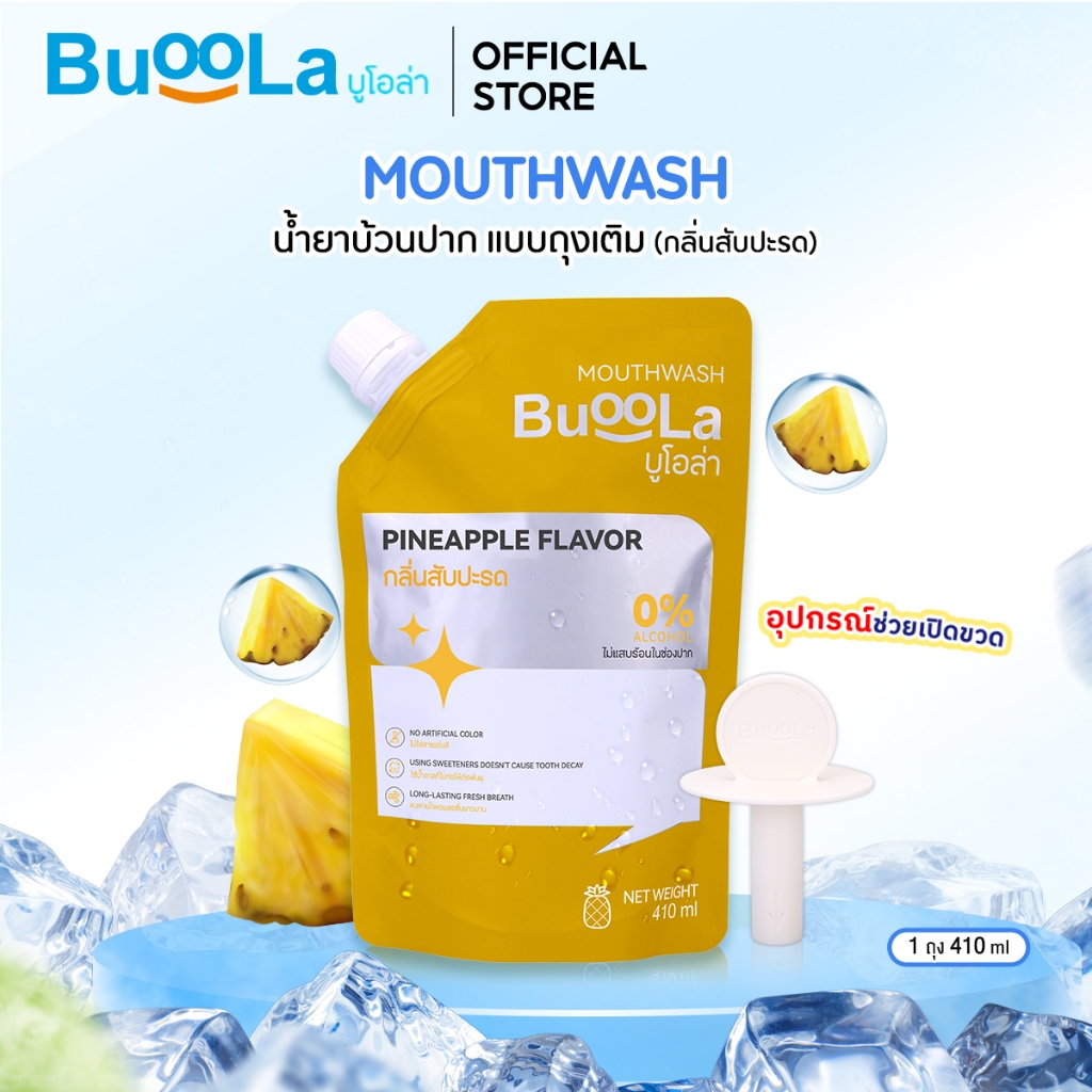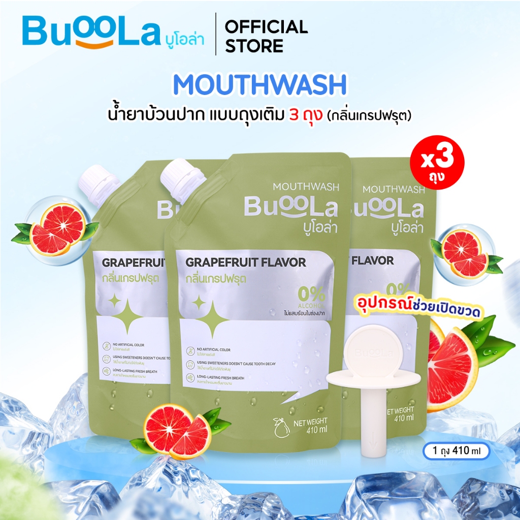 Buoola น้ำยาบ้วนป ากแบบถุงเติม (แถมอุปกรณ์ช่วยเปิดขวด) ช่วยระงับกลิ่นปาก ปากหอม สะอาด ลมหายใจหอมสดชื่น