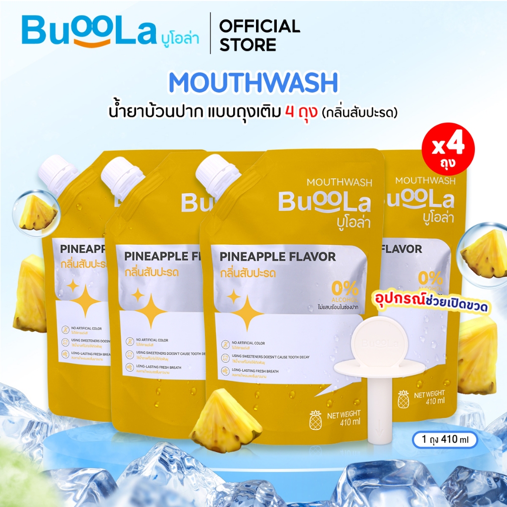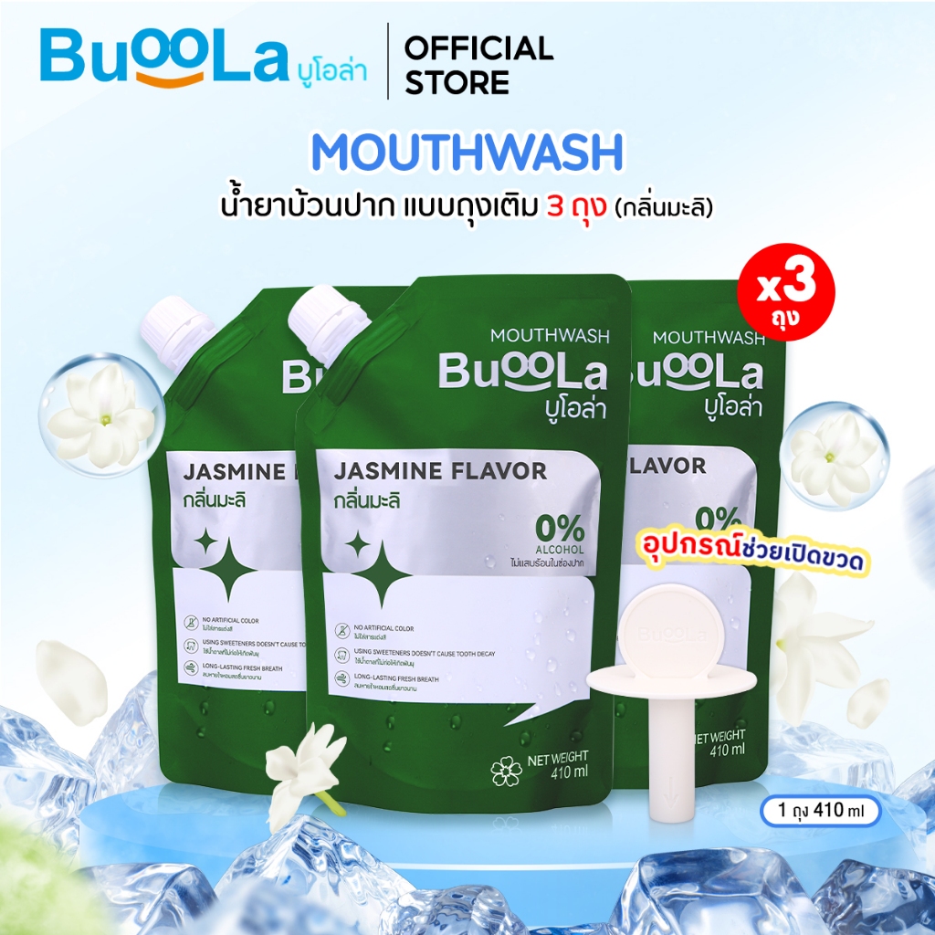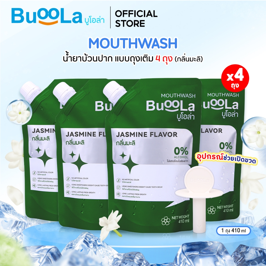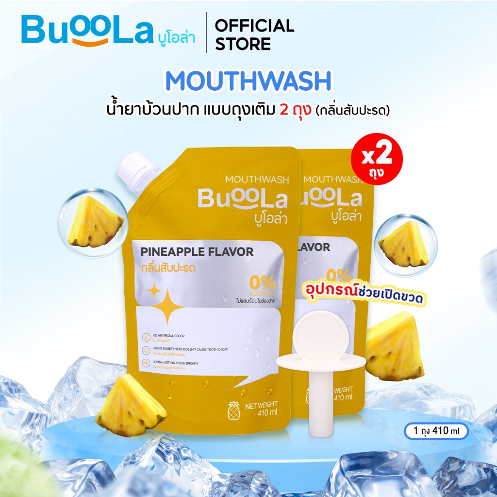Buoola น้ำยาบ้วนป ากแบบถุงเติม (แถมอุปกรณ์ช่วยเปิดขวด) ช่วยระงับกลิ่นปาก ปากหอม สะอาด ลมหายใจหอมสดชื่น
