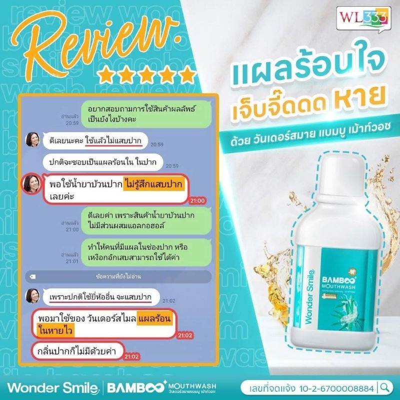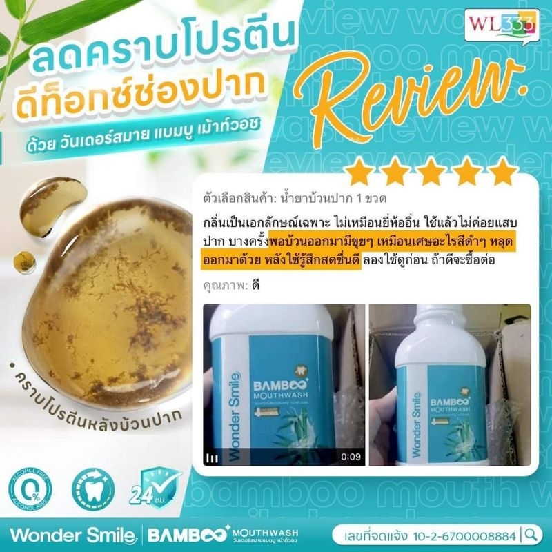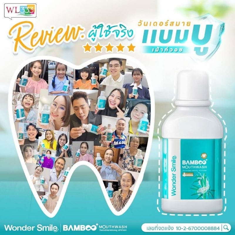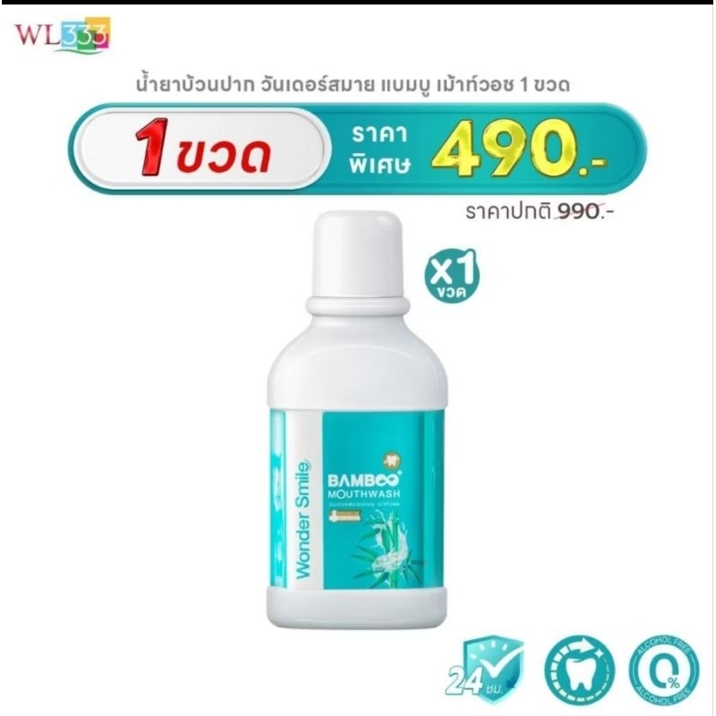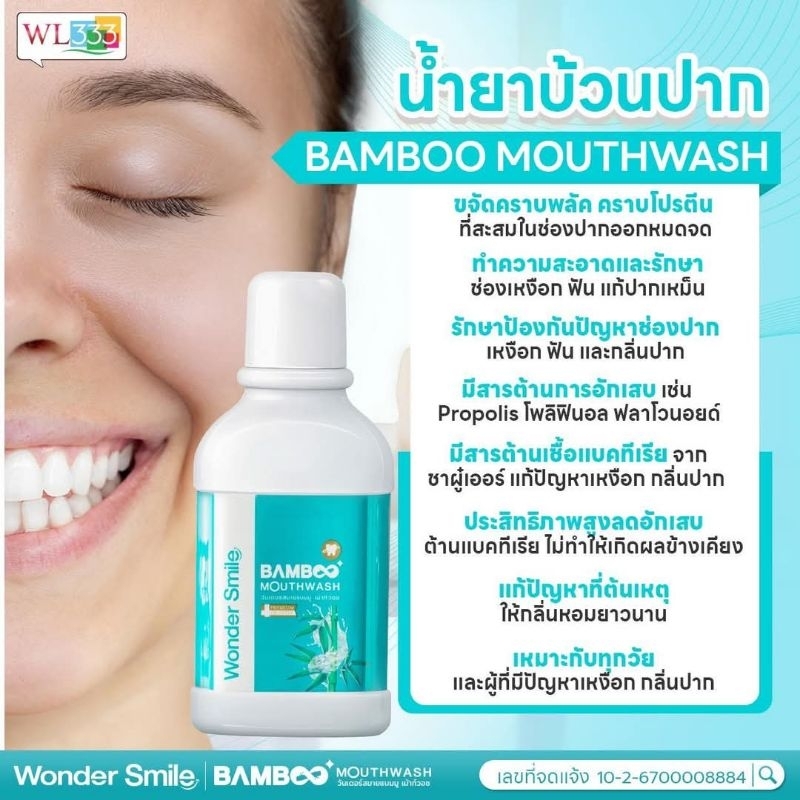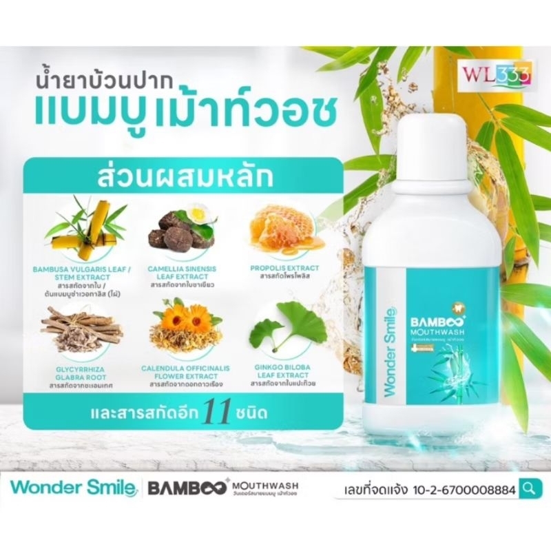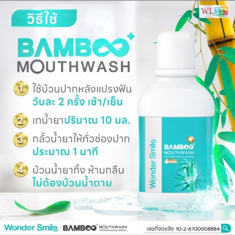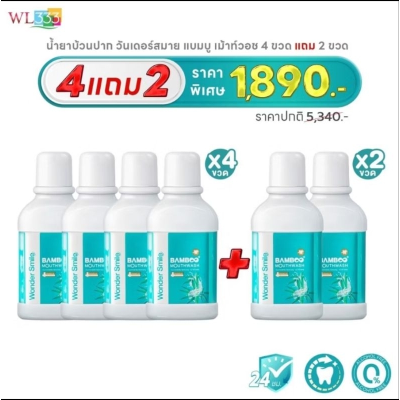 ส่งฟรี [ 4 แถม 2 ] น้ำยาบ้วนปาก Wonder Smile Bamboo Mouthwash 300ml. สะอาดสดชื่น อ่อนโยนต่อสุขภาพช่องปาก