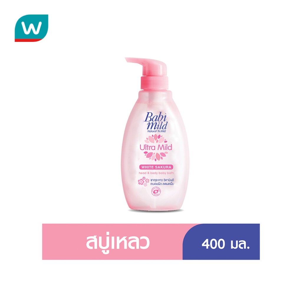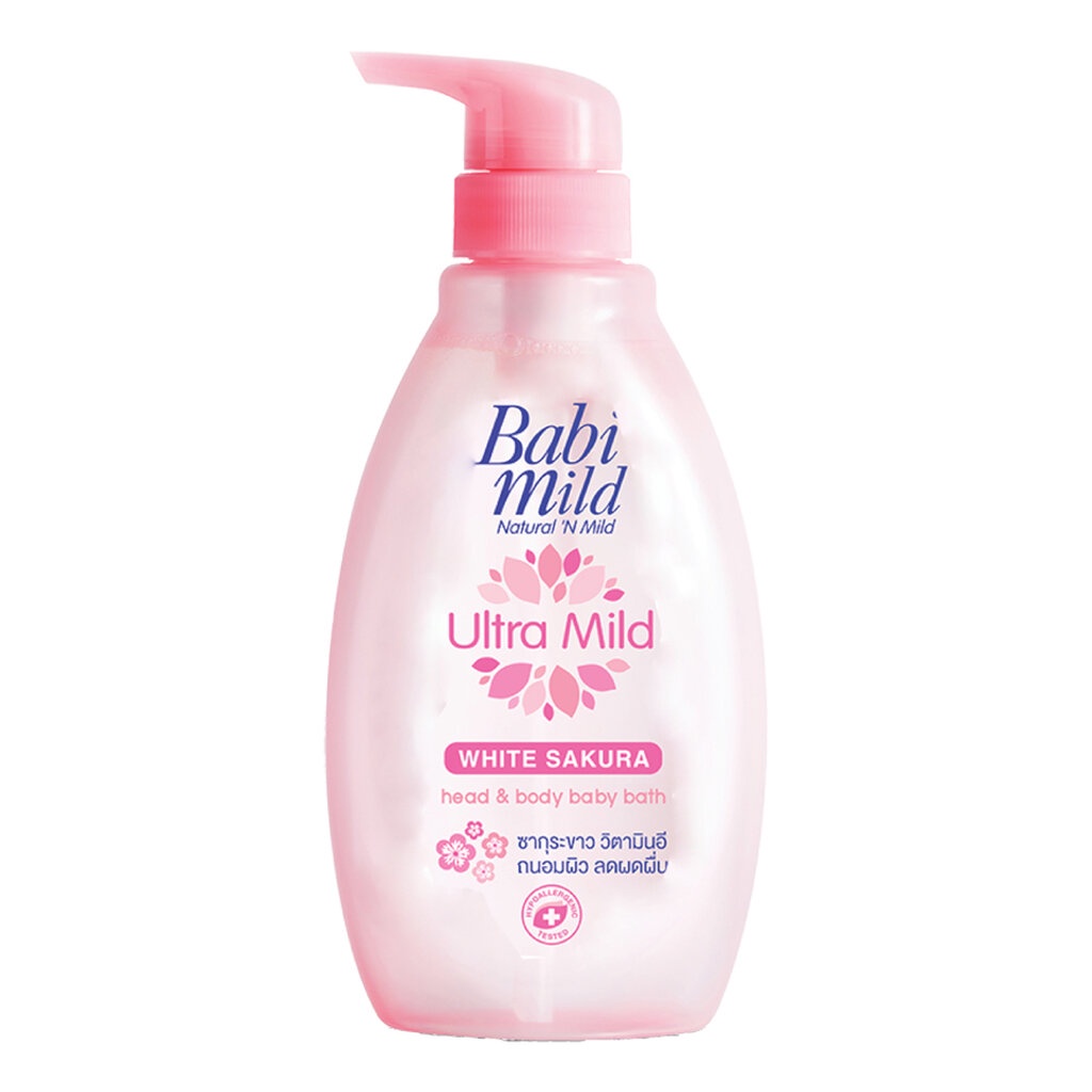 Babi Mild เบบี้มายด์ อัลตร้ามายด์ เฮด แอนด์ บอดี้ เบบี้ บาธ ไวท์ ซากุระ 380 มล. อาบน้ำ สระผม
