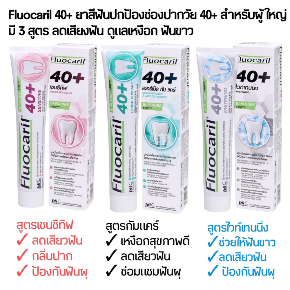 Fluocaril ยาสีฟันผู้ใหญ่ ยาสีฟันฟลูโอคารีล 40+ มี 3 สูตร ขนาด 160 กรัม