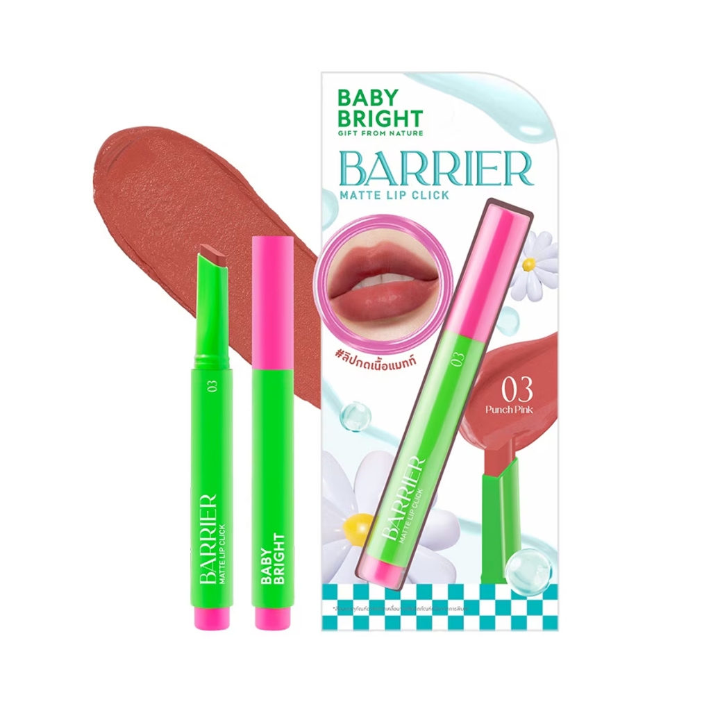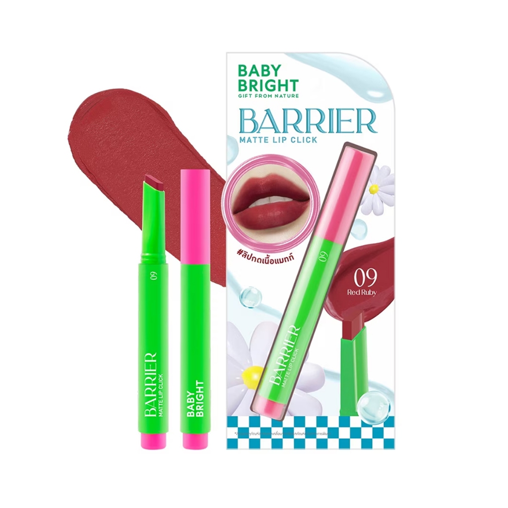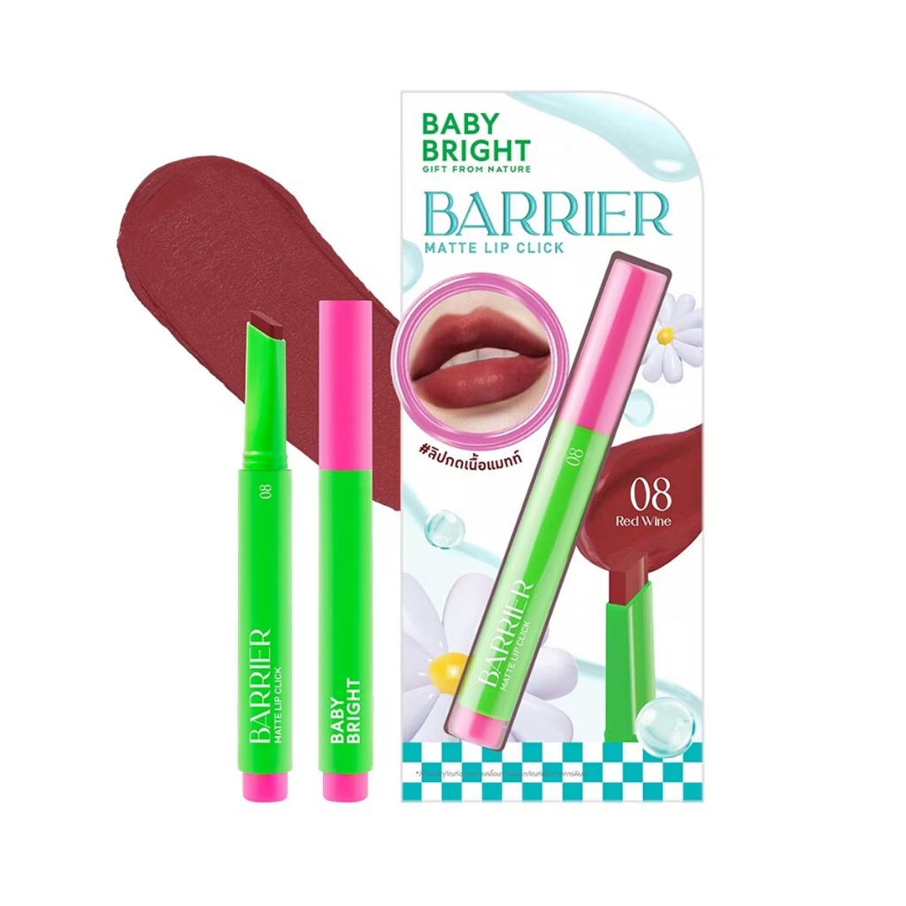 (สินค้า clearance) BABYBRIGHT เบบี้ ไบร์ท แบริเออร์ แมทท์ ลิป คลิก 1.4 g Barrier Matte Lip Click (มีให้เลือก 9 เฉดสี)