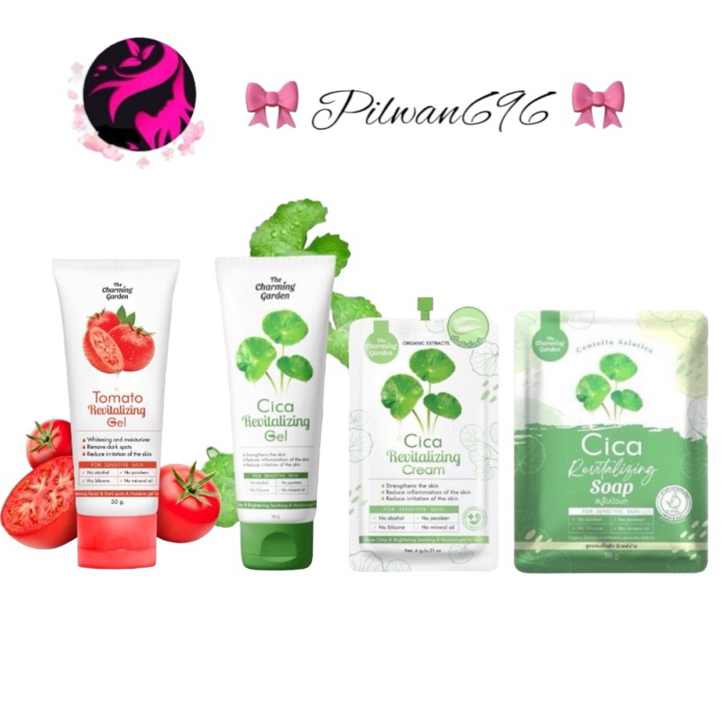 Cica Revitalizing Gel เจลกู้ผิว ใบบัวบก🍀เจล 50 g. & สบู่ 50 g. & ครีม 6 g. 🍀 The charming garden 50 g.