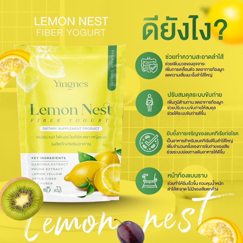 (🍋พร้อมส่ง |แพคเกจใหม่ ของแท้💯) 30ซอง 📍 Lemon nest Yingnes โพรไบติกเลม่อนเนส โยเกิร์ตไฟเบอร์ ปรับสมดุลลำไส้