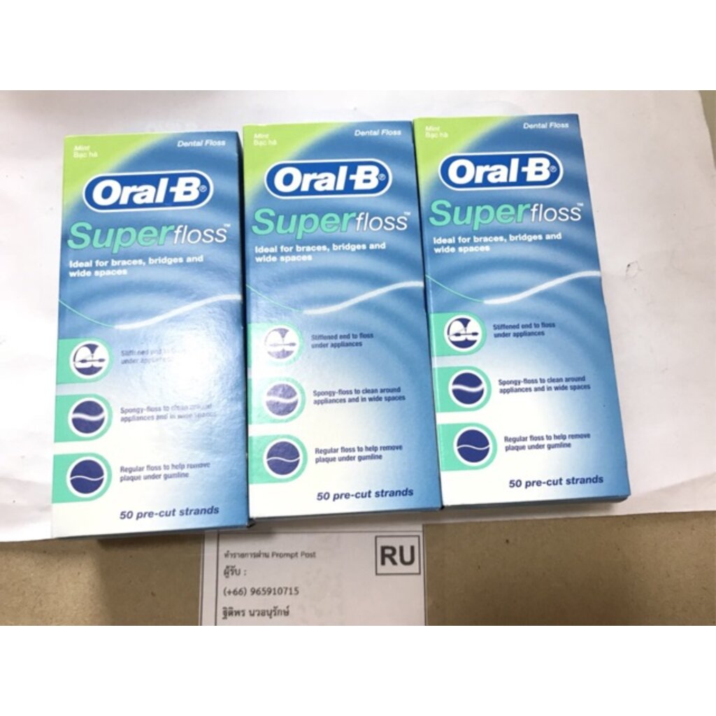 ถูกสุด ส่งเร็ว ไหมขัดฟันชนิดพิเศษ oral b ออรัลบี superfloss ซุปเปอร์ฟลอซ 50 ชิ้น