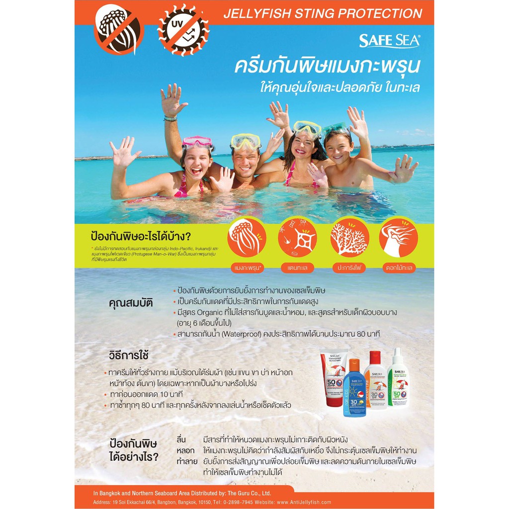<ขายดี> Safe Sea ครีมกันแดด ป้องกันแมงกระพรุน SPF50 สูตรสำหรับเด็ก (หมดอายุ 05/28)
