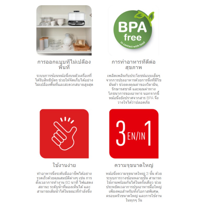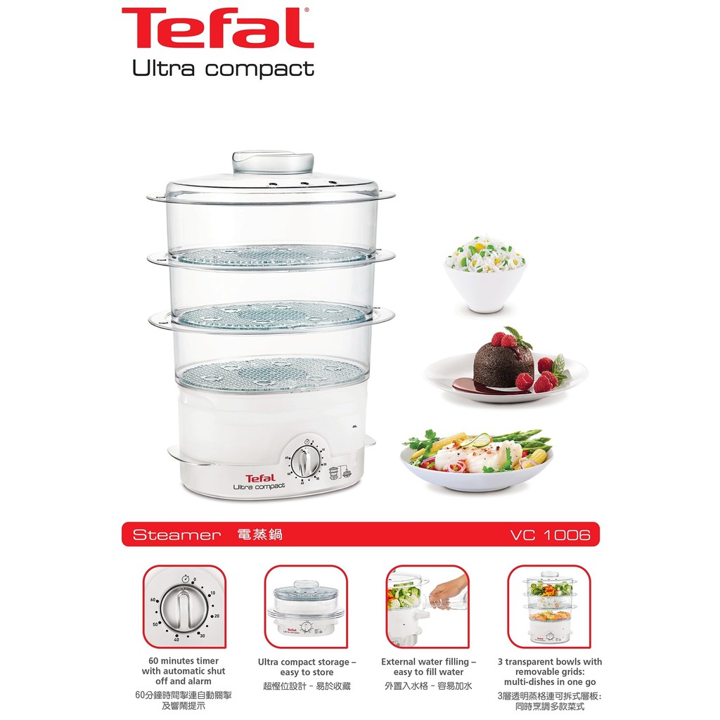 🔥🔥TEFAL หม้อนึ่งไฟฟ้า รุ่น VC100630 (3ชั้นนึ่งสีขาว)/ รุ่น VC204810 (3ชั้นนึ่งสีดำ) / รุ่น VC139810 (2ชั้นนึ่งสีดำ)